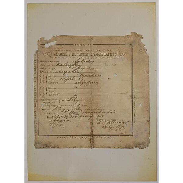 Απόδειξη πωλήσεως Σταφιδικής Τραπέζης 1902