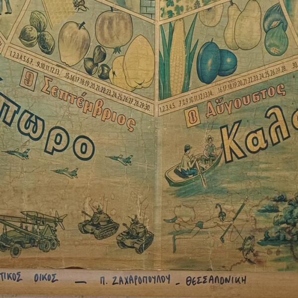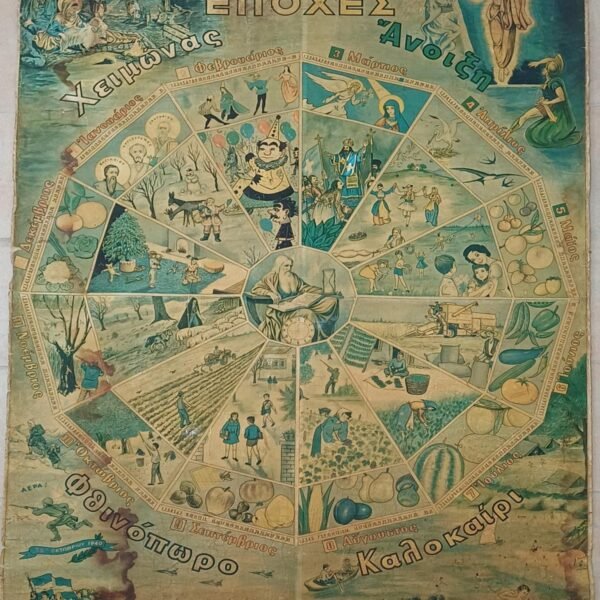 Vintage λιθόγραφος σχολικός χάρτης ‘Ο χρόνος και οι εποχές’