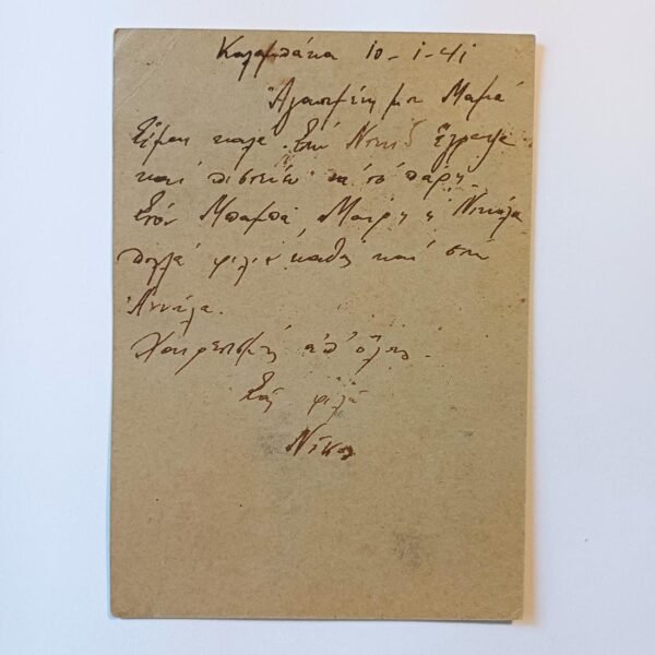 Αλβανικό έπος – Επιστολικό δελτάριο Ιωάννη Μεταξά – Καλαμπάκα, 10-1-1941