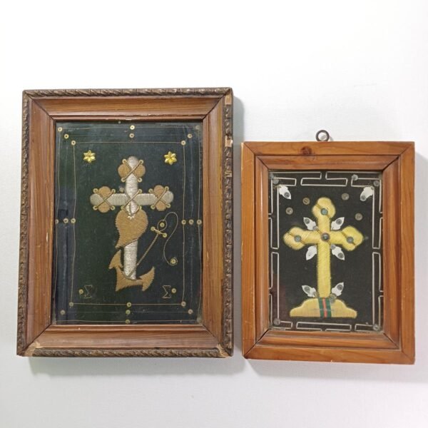 Χειροποίητα κεντήματα φουσκωτό “Σταυρός” Μικράς Ασίας (σε κορνίζα) (2 τεμ.)