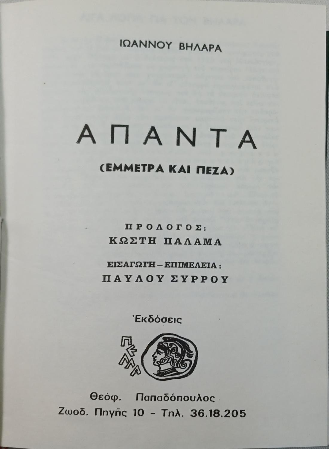 “Άπαντα – Ιωάννη Βηλαρά”