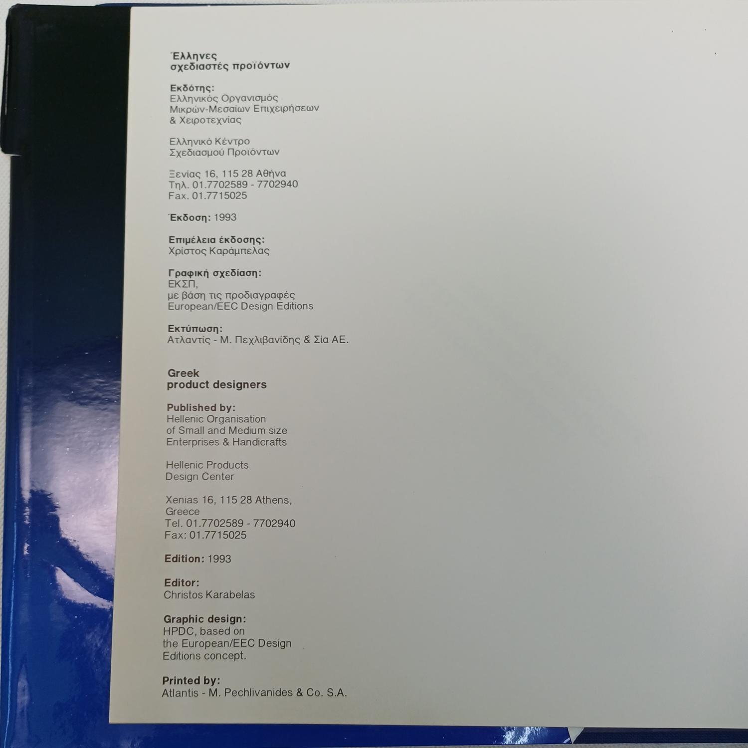 Το βιβλίο “Έλληνες Σχεδιαστές Προϊόντων” (Greek Product Designers), είναι μια έκδοση-κατάλογος που παρουσιάζει το έργο Ελλήνων designers εκείνης της περιόδου.