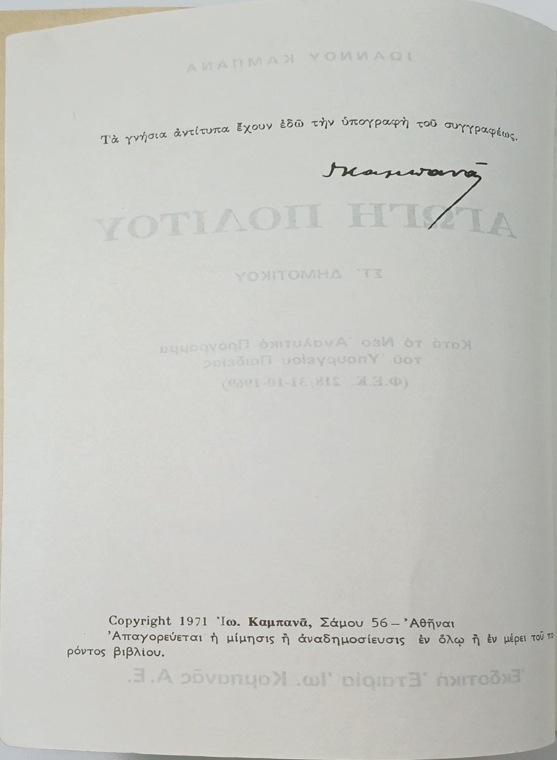 Εκδοτικός Οίκος: Ίω. Καμπανάς Α.Ε