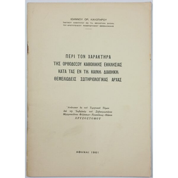 “Περί τον χαρακτήρα της Ορθοδόξου Καθολικής Εκκλησίας κατά τας εν τη Καινή Διαθήκη θεμελιώδεις σωτηριολογικάς αρχάς” (1961)