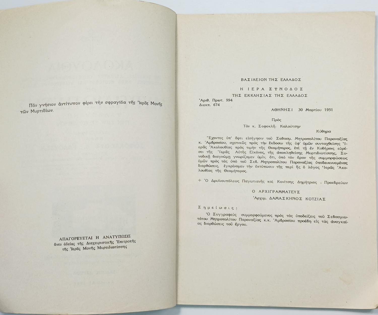 Αρχική σελίδα Βιβλία Θρησκεία “Ακολουθία της Παναγίας της Μυρτιδιώτισσης” (1969)