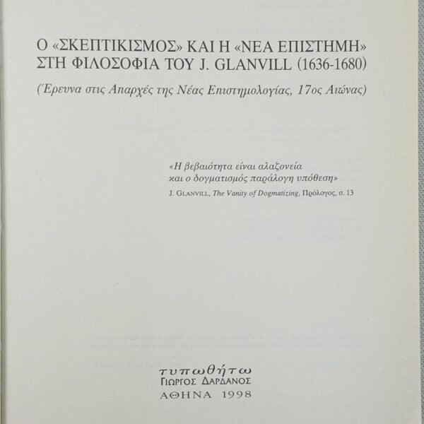 “Ο Σκεπτικισμός και η Νέα Επιστήμη στη Φιλοσοφία του J. Glanvill (1636-1680) Ι. Γ. Δελλής (1998)