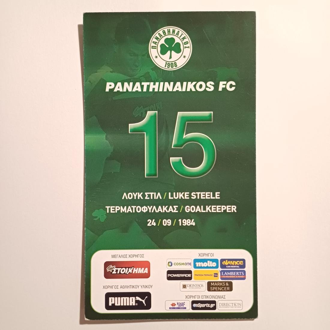 Αυθεντική συλλεκτική κάρτα με το αυτόγραφο του Άγγλου τερματοφύλακα Luke Steele του Παναθηναϊκού (2014-2017)