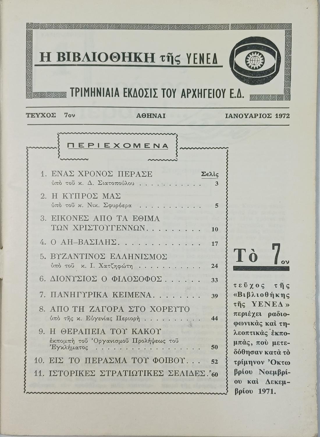 “Βιβλιοθήκη της ΥΕΝΕΔ” Έτος 2ον, Τεύχος 7 Ιάν. 1972