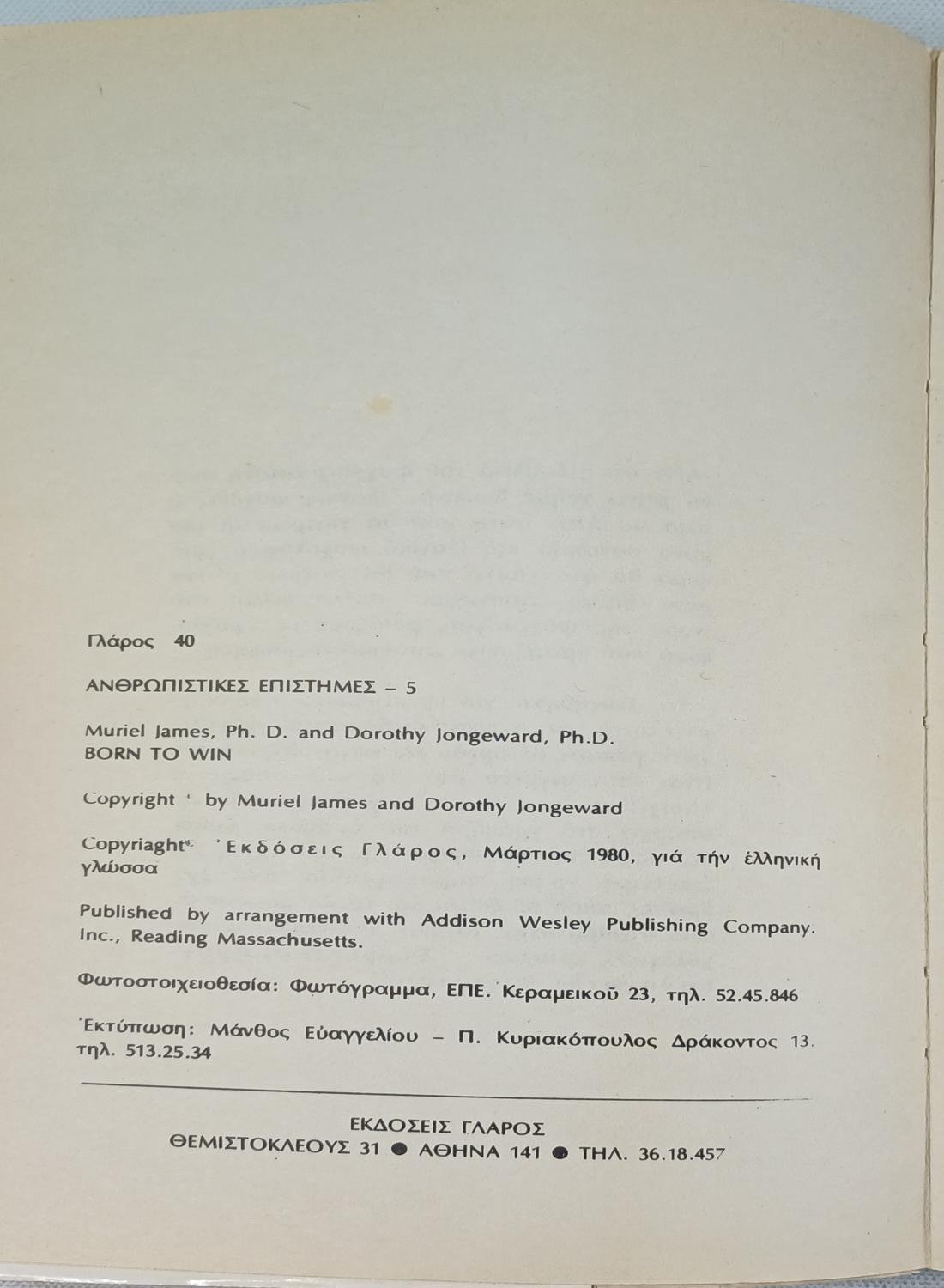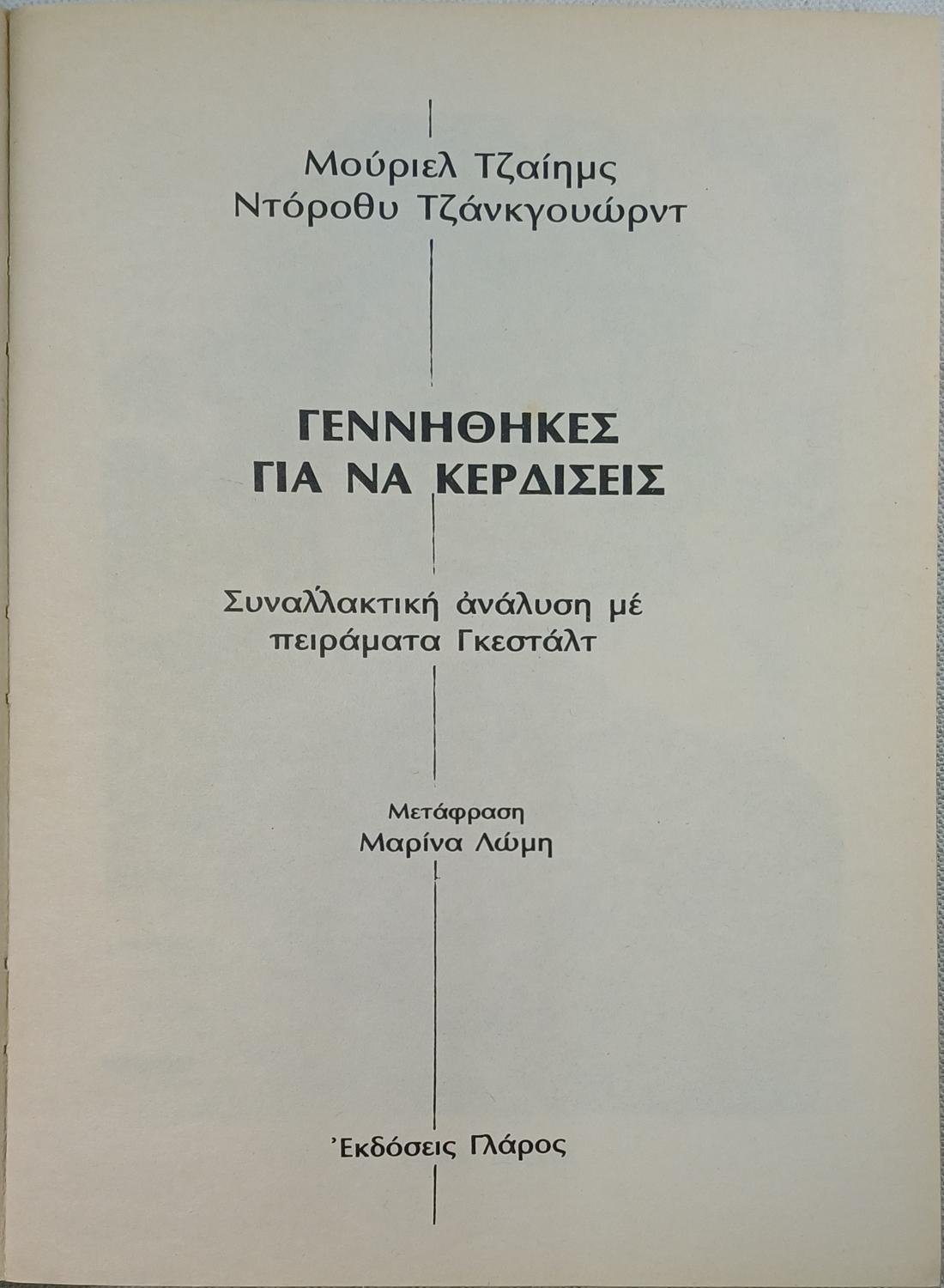 “Γεννήθηκες για να Κερδίσεις” Μουριέλ Τζάιημς / Ντόροθυ Τζανκγουώρντ (1980)