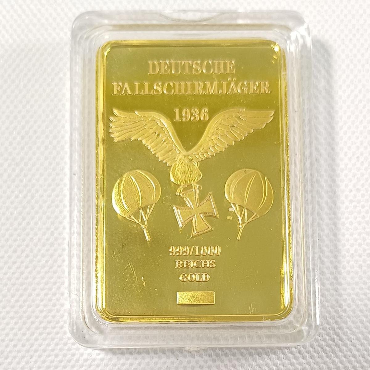 Γερμανική επιχρυσωμένη μπάρα η οποία τιμά τους Γερμανούς αλεξιπτωτιστές. Στην μια όψη αναγράφονται οι λέξεις “Deutsche Fallschirmjäger 1936” όπου ο όρος «Fallschirmjäger» μεταφράζεται ως «κυνηγός αλεξιπτωτιστών». Το έτος 1936 υποδηλώνει την περίοδο κατά την οποία αυτοί οι αλεξιπτωτιστές ήταν ενεργοί, δηλαδή κατά την εποχή πριν από τον Δεύτερο Παγκόσμιο Πόλεμο.