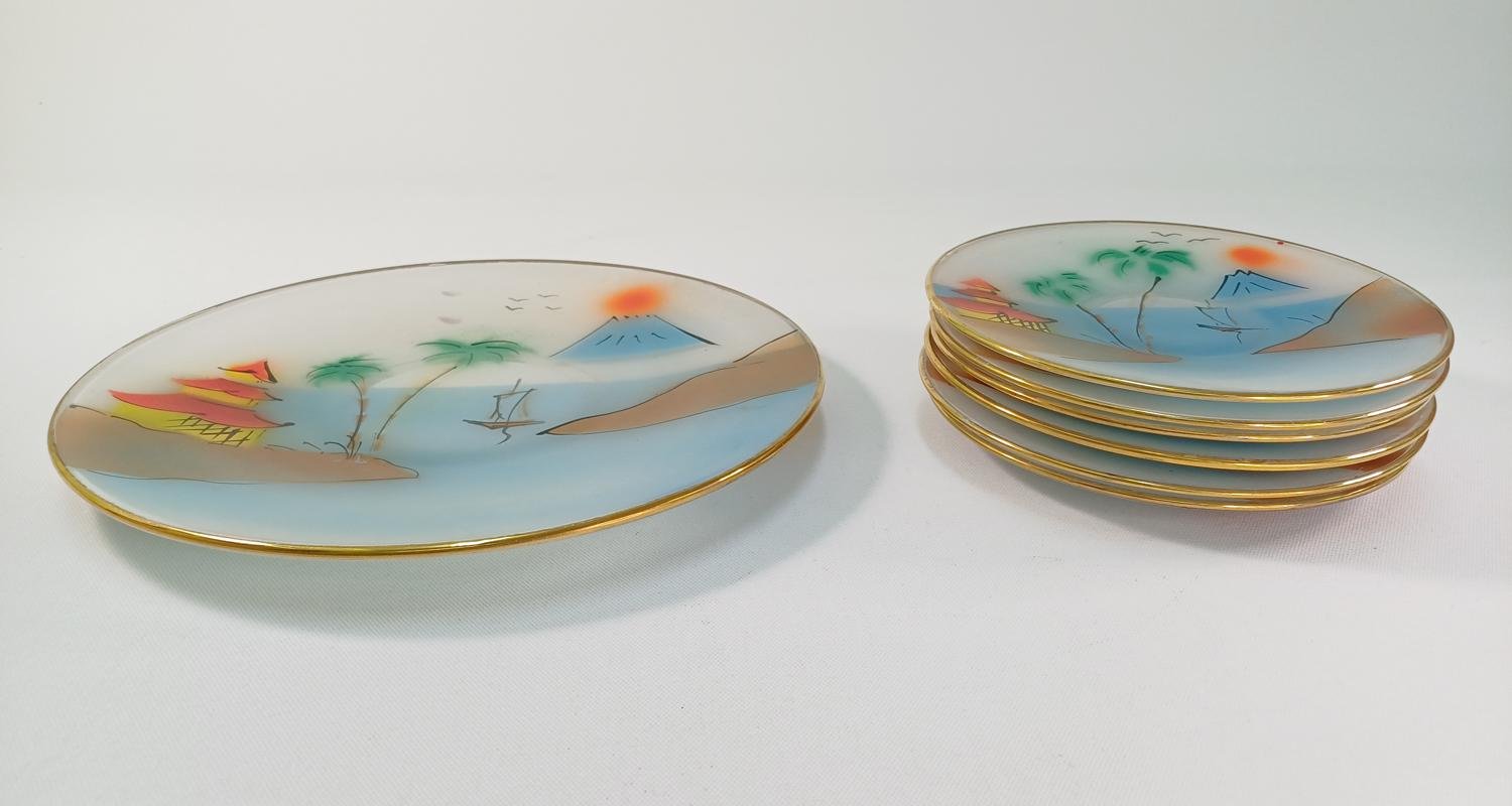 Γυάλινα πιάτα με Ιαπωνικά τοπία ζωγραφισμένα στο χέρι (7 τεμάχια)