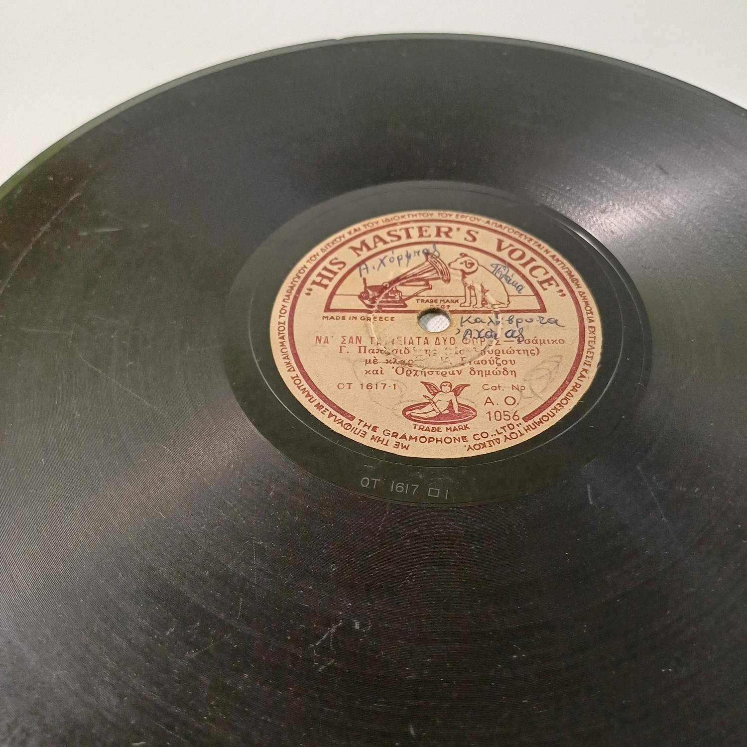 Vintage δίσκος βινυλίου 78 στροφών του Γιώργου Παπασιδέρη (Κουλουριώτη) σε παραγωγή της εταιρείας ‘His master’s voice’