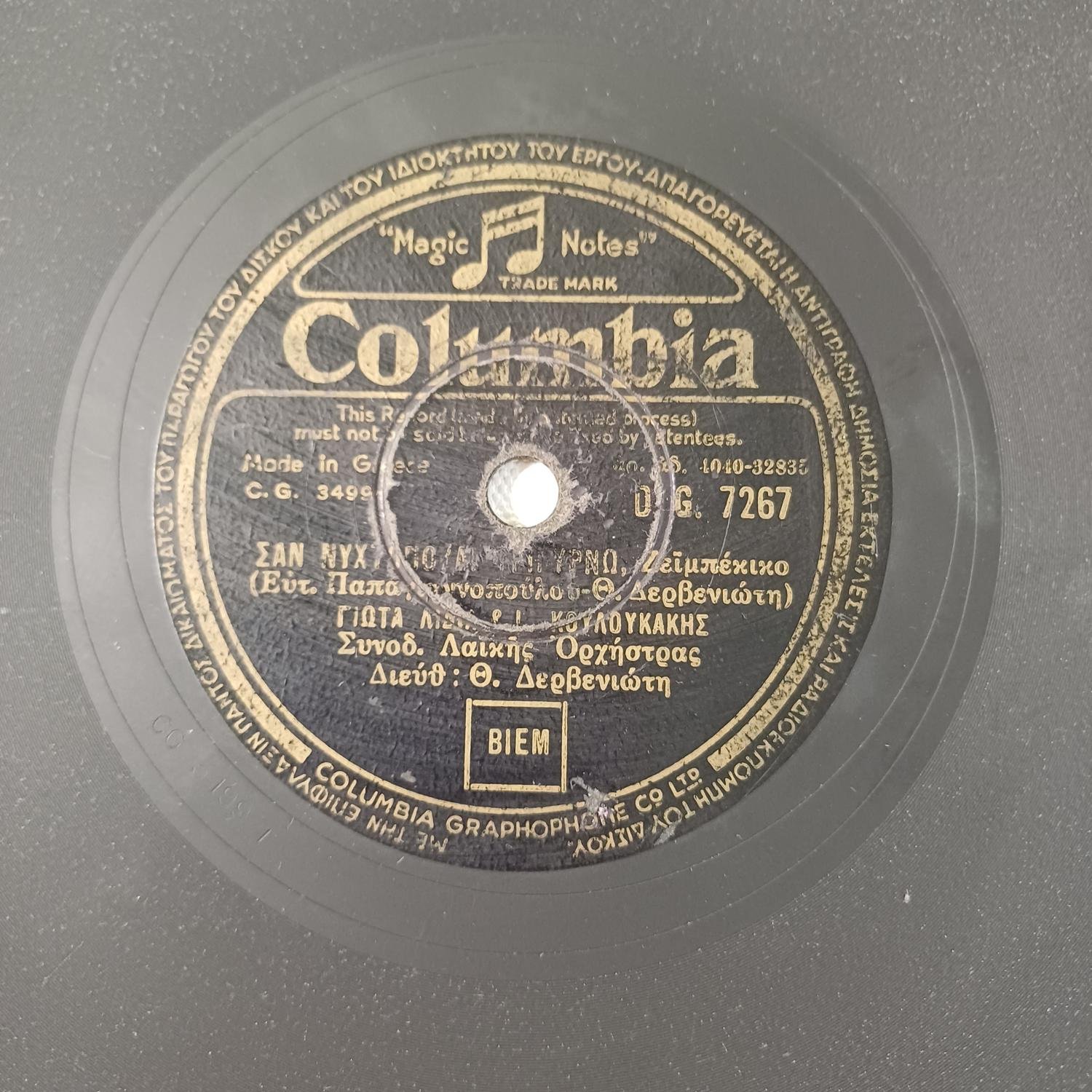 Vintage δίσκος βινυλίου 78 στροφών των Γιώτα Λίδια- Γ. Κουλουκάκη και του Στέλιου Καζαντζίδη σε παραγωγή της Columbia Records.