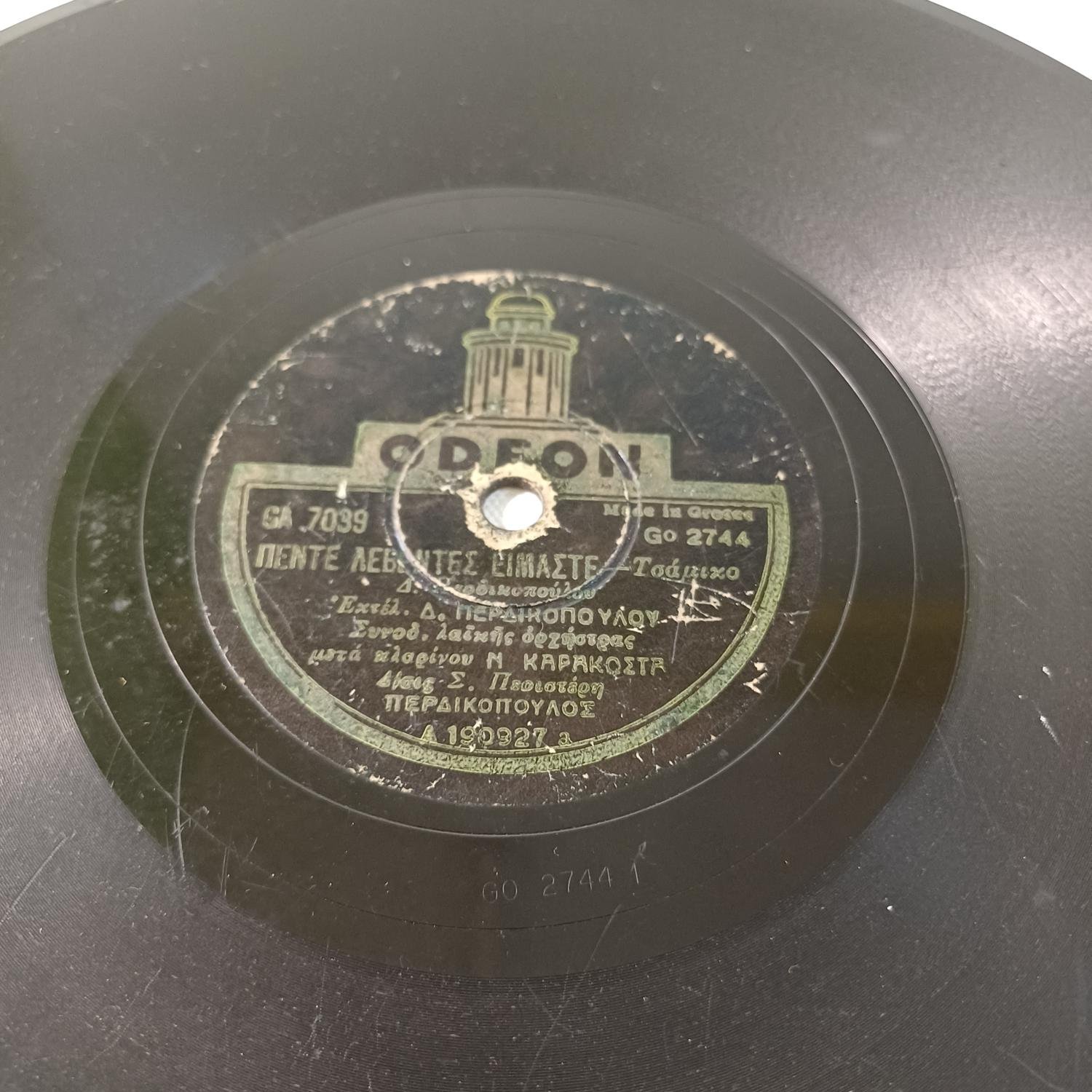 Vintage δίσκος βινυλίου 78 στροφών του Δημήτρη Περδικόπουλου σε παραγωγή της εταιρείας ODEON.