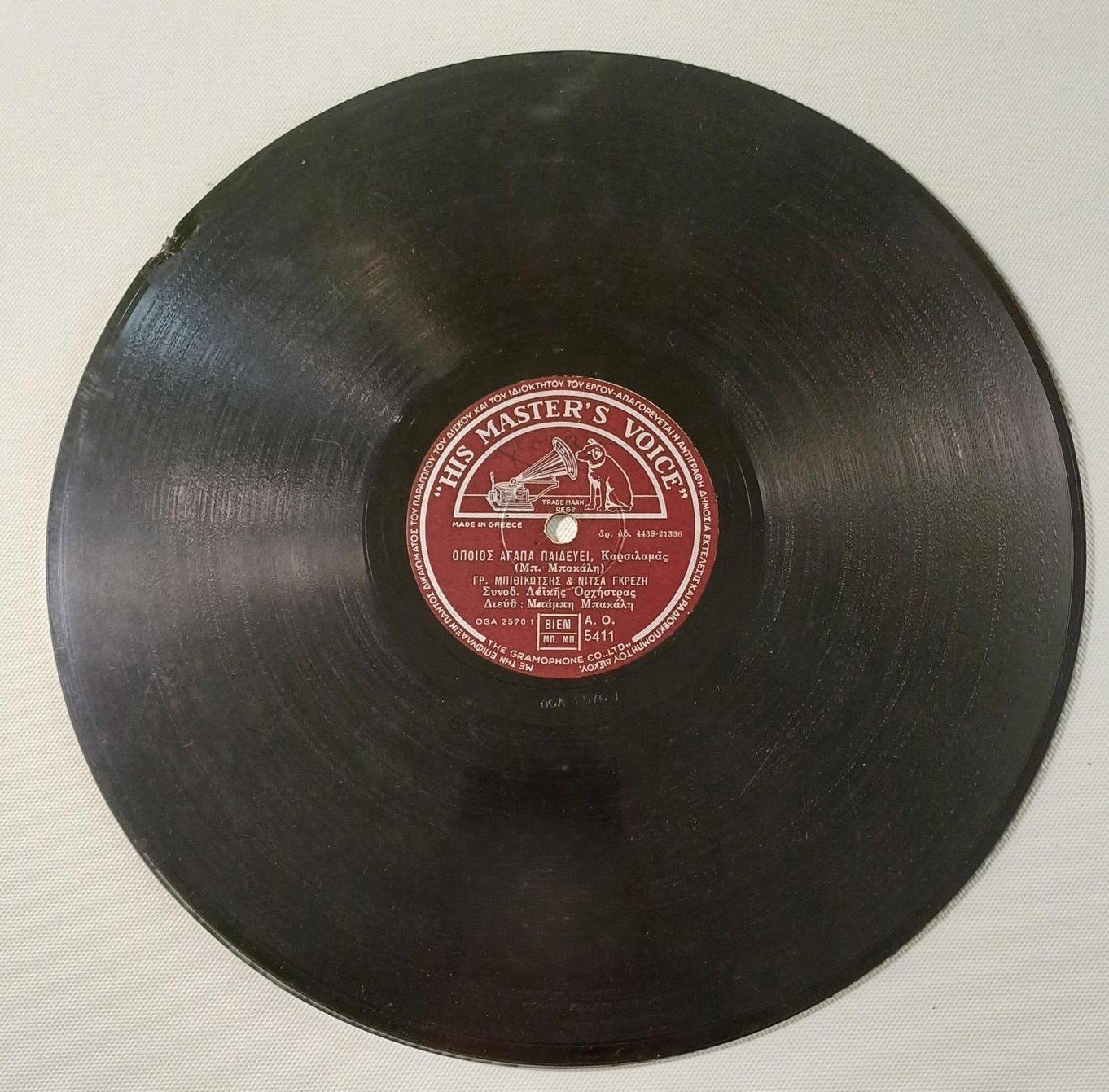 Vintage δίσκος βινυλίου 78 στροφών σε παραγωγή της εταιρείας ‘His master’s voice’