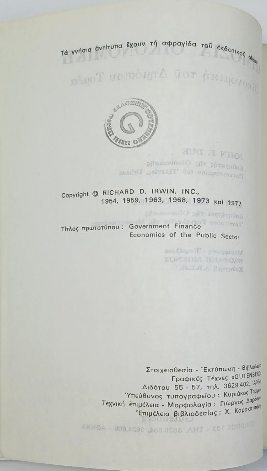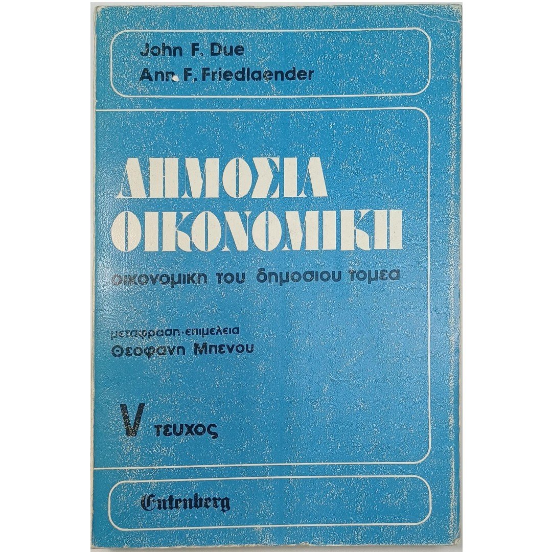 “Δημόσια Οικονομική” Τεύχος V – John F. Due, Ann F. Friedlaender