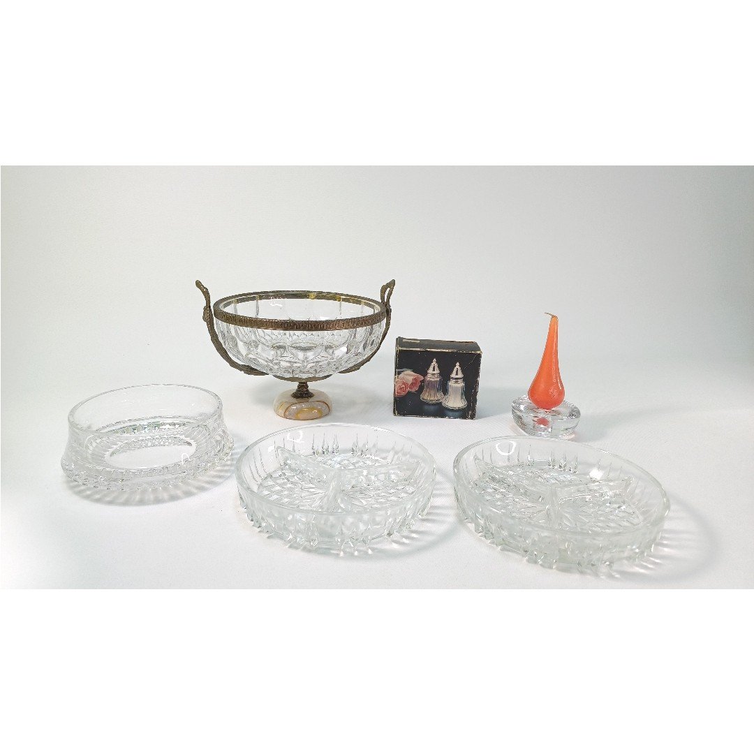 LOT 6 διακοσμητικών ειδών σαλονιού από κρύσταλλο και γυαλί. Το LOT αποτελείται από: