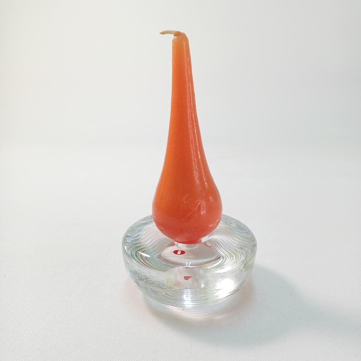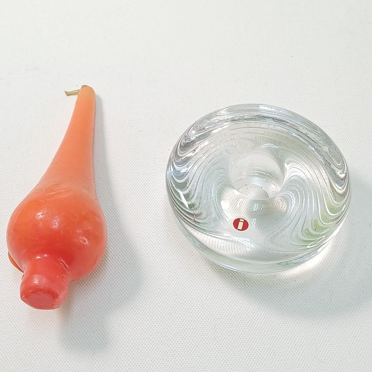 5) 1 γυάλινο κηροπήγιο με το κερί του (Made in Finland). Έχει διάμετρο 8 cm και ύψος 3,5 cm.