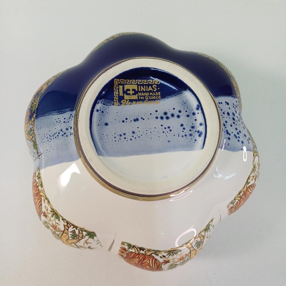 LOT 4 διακοσμητικών σουβενίρ διαφόρων ειδών. Αποτελείται από χειροποίητα πορσελάνινα αντικείμενα σε μπλε σκούρο και άσπρο χρώμα με αρχαιοελληνικές παραστάσεις και λεπτομέρειες με χρυσό 24 Κ (Made in Greece).