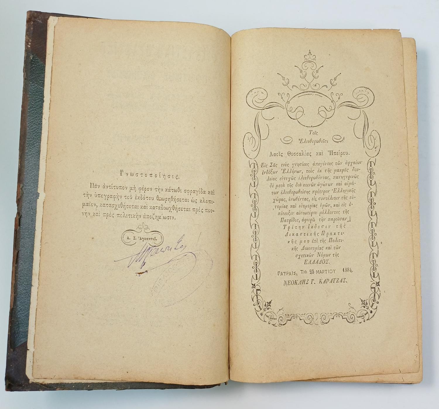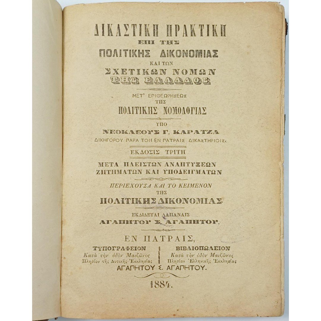 “Δικαστική Πρακτική επί της Πολιτικής Δικονομίας και των Σχετικών Νόμων της Ελλάδος” Νεοκλής Γ. Καρατζάς (1884)