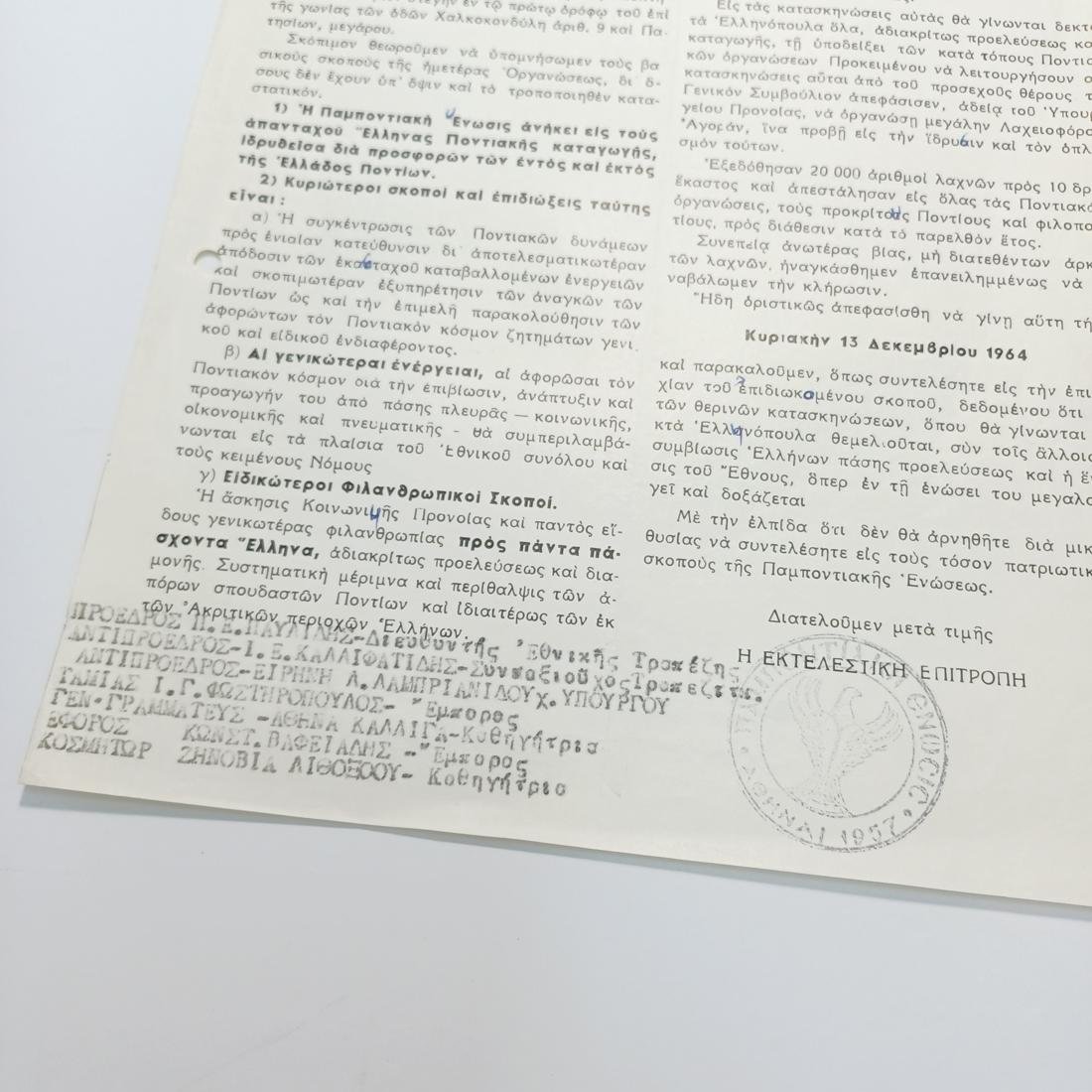 Εγκύκλιος της Παμποντιακής Ενώσεως με έδρα την Αθήνα, η οποία εκδόθηκε στις 9 Οκτωβρίου 1964.