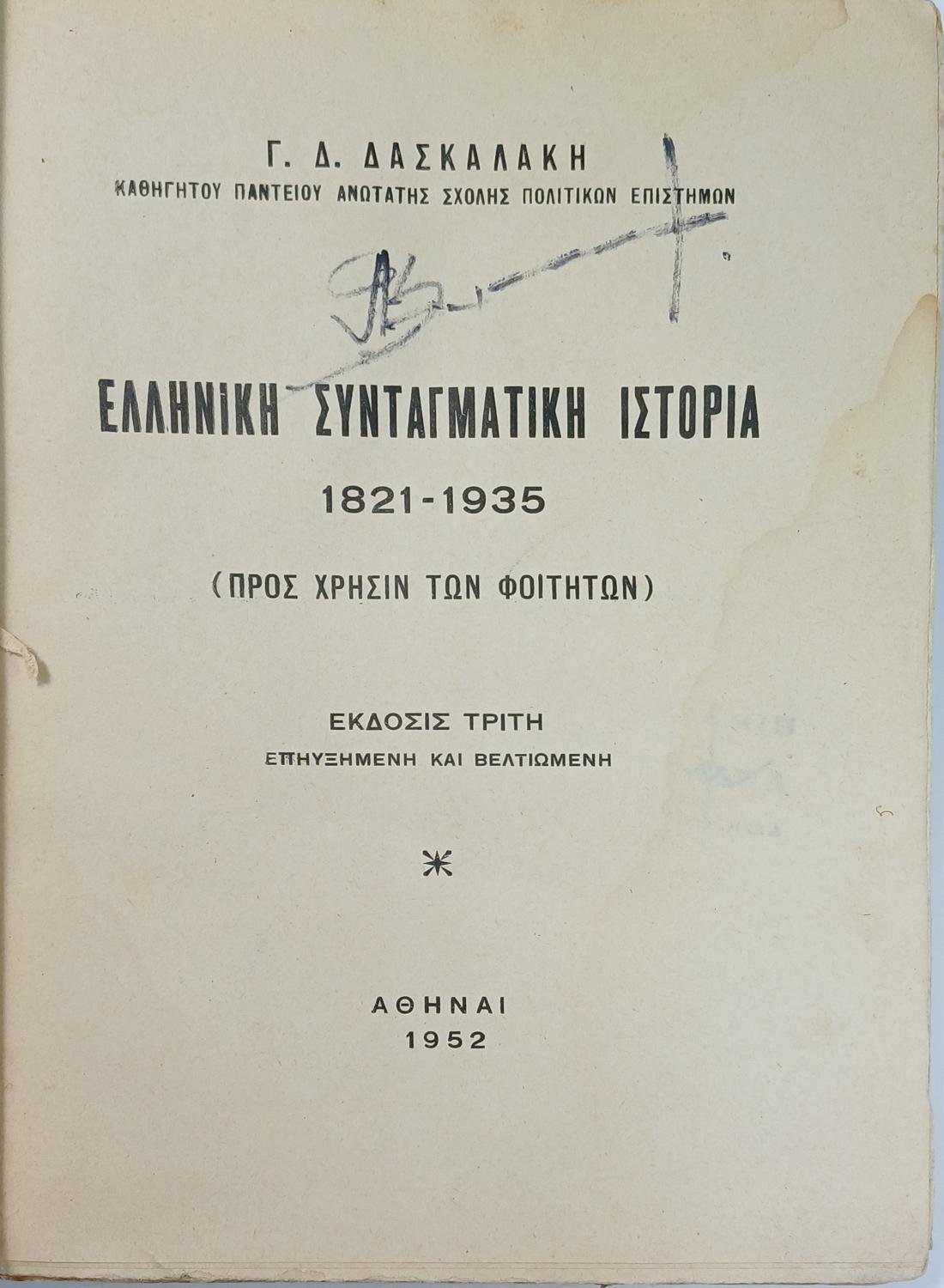 “Ελληνική Συνταγματική Ιστορία 1821-1935” Γ. Δ. Δασκαλάκης (1952)