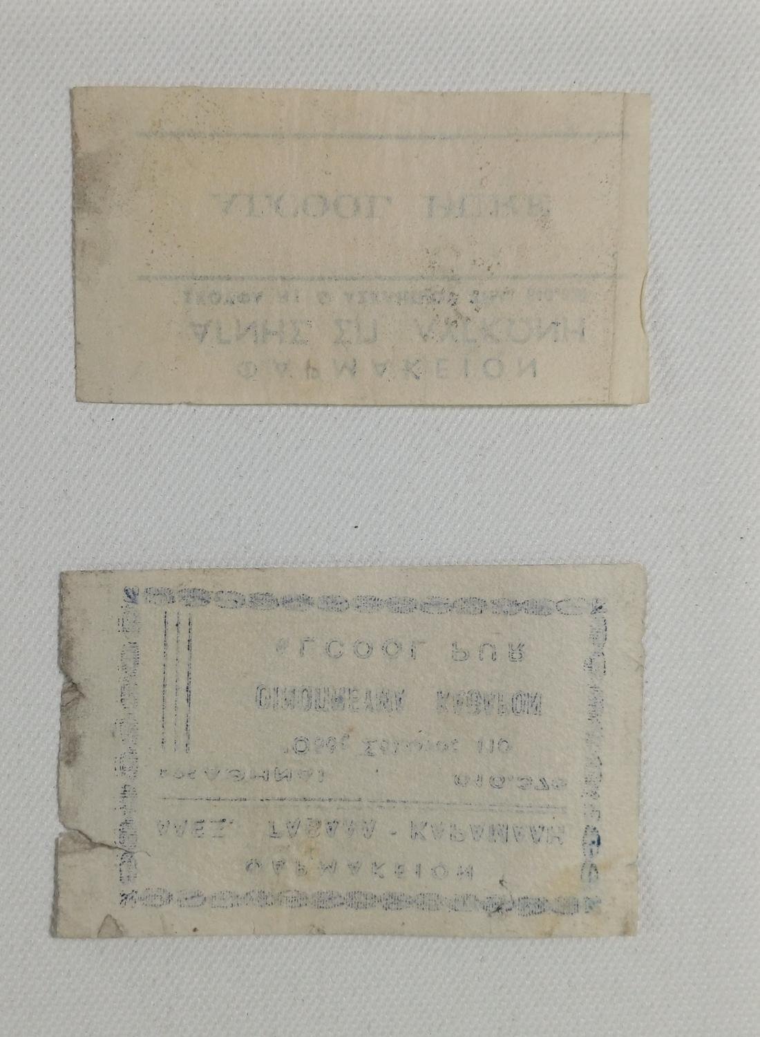 2 vintage ετικέτες φαρμακείου για οινόπνευμα. Οι διαστάσεις τους είναι 5 x 8 cm και 4 x 7,5 cm αντίστοιχα.