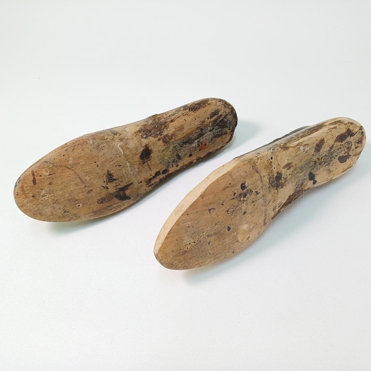 Ζευγάρι από ξύλινα παραδοσιακά καλαπόδια, μεταχειρισμένα. Παραδοσιακά χρησιμοποιούνταν στη διαδικασία κατασκευής υποδημάτων για τη διαμόρφωση της φόρμας των παπουτσιών. Το μήκος τους είναι 23 cm.