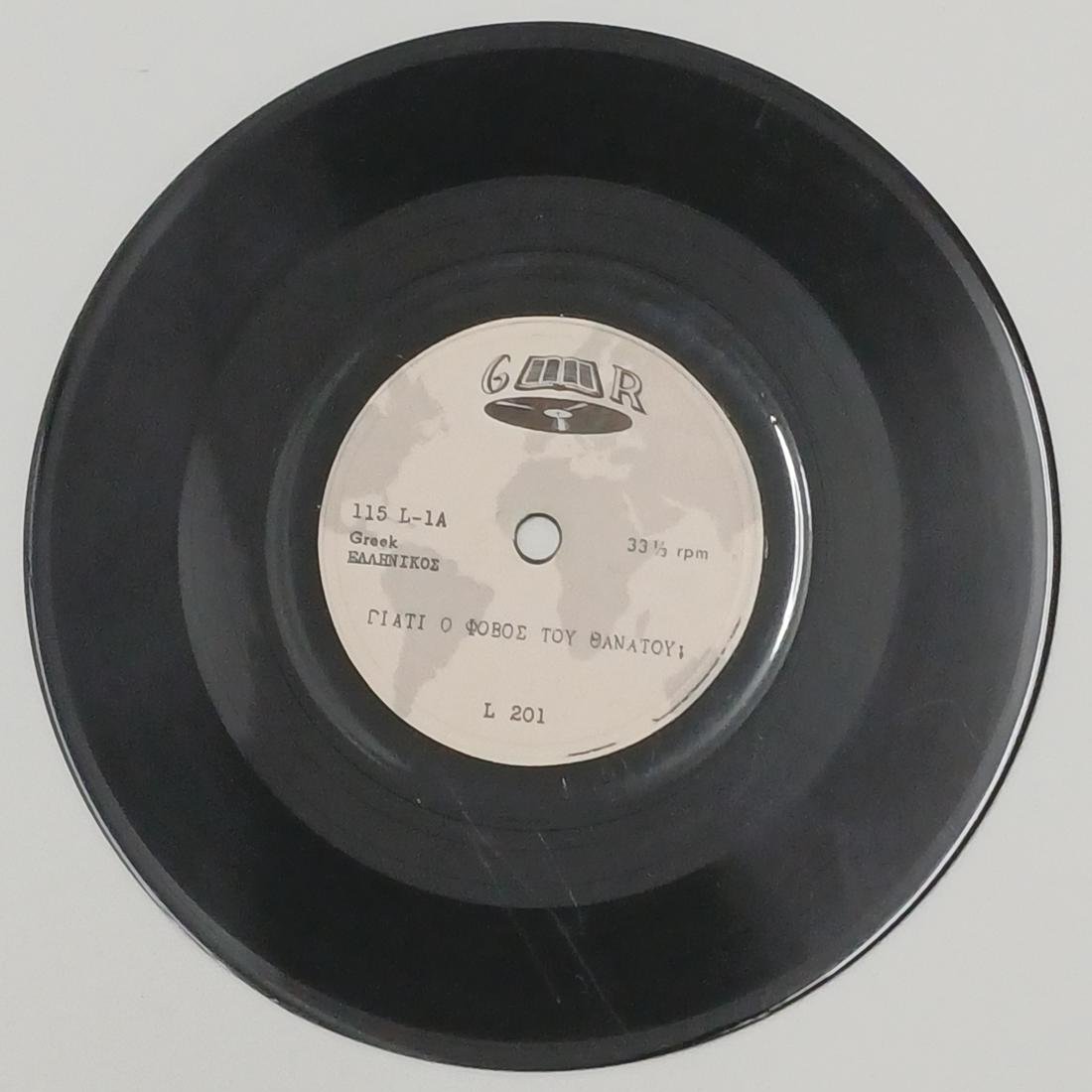 Σπάνιος vintage δίσκος βινυλίου 33  1/3 στροφών σε παραγωγή της εταιρείας ‘GΜR‘ (Αμερική), στο δεύτερο μισό του 20ού αιώνα. Η συγκεκριμένη εταιρεία ειδικευόταν σε εκδόσεις περιορισμένης κυκλοφορίας (private press), συχνά με περιεχόμενο που περιλάμβανε βυζαντινούς ύμνους, θρησκευτικές ομιλίες ή δημοτικά τραγούδια που δεν έβρισκαν στέγη στις μεγάλες δισκογραφικές της Ελλάδας.