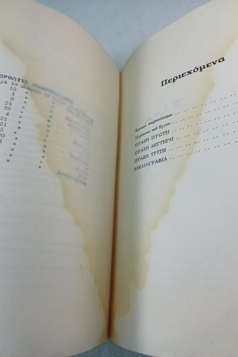 Το βιβλίο είναι μεταχειρισμένο και υπάρχει φθορά στα φύλλα λόγω υγρασίας. Έχει ξεκολλημένη ράχη και υπάρχουν σημειώσεις με μολύβι προηγούμενου ιδιοκτήτη.