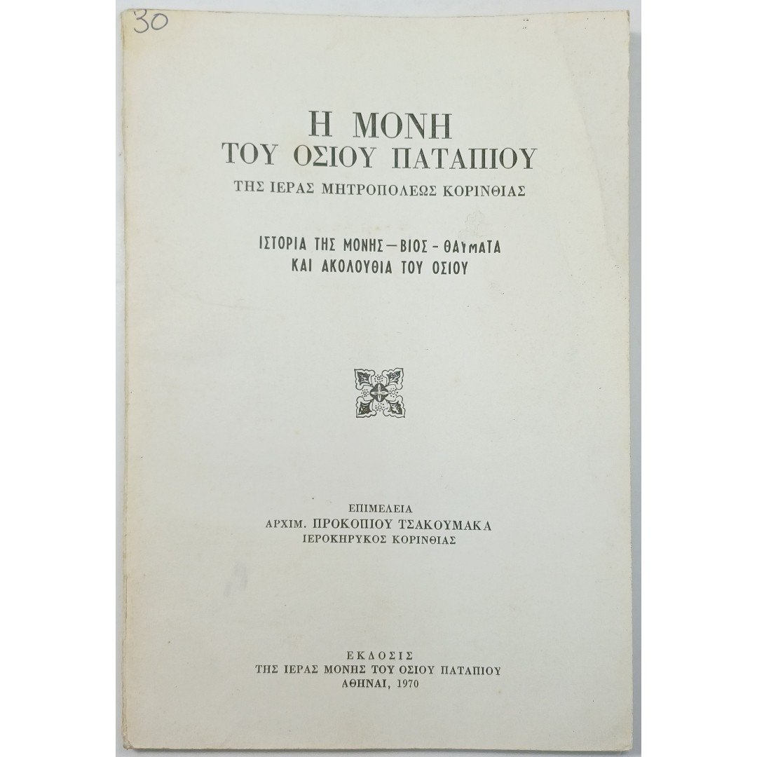 “Η Μονή του Οσίου Παταπίου” Αρχιμ. Προκοπίου Τσακουμάκα (1970)