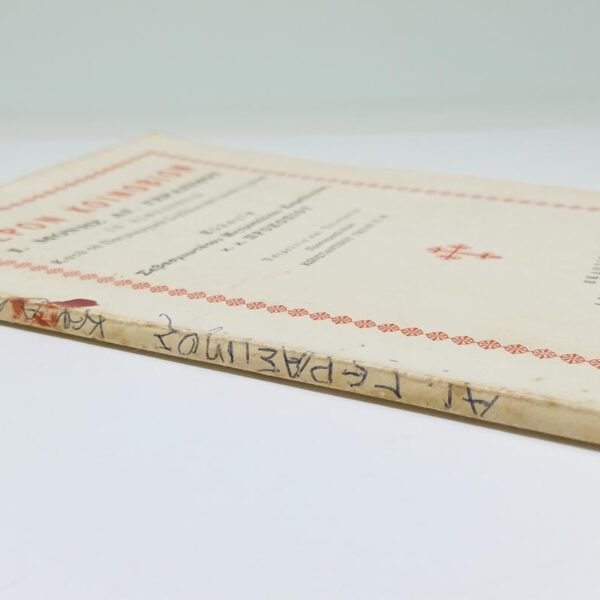 Το βιβλίο είναι σε καλή κατάσταση με ελάχιστη φθορά λόγω χρήσης και παλαιότητας.