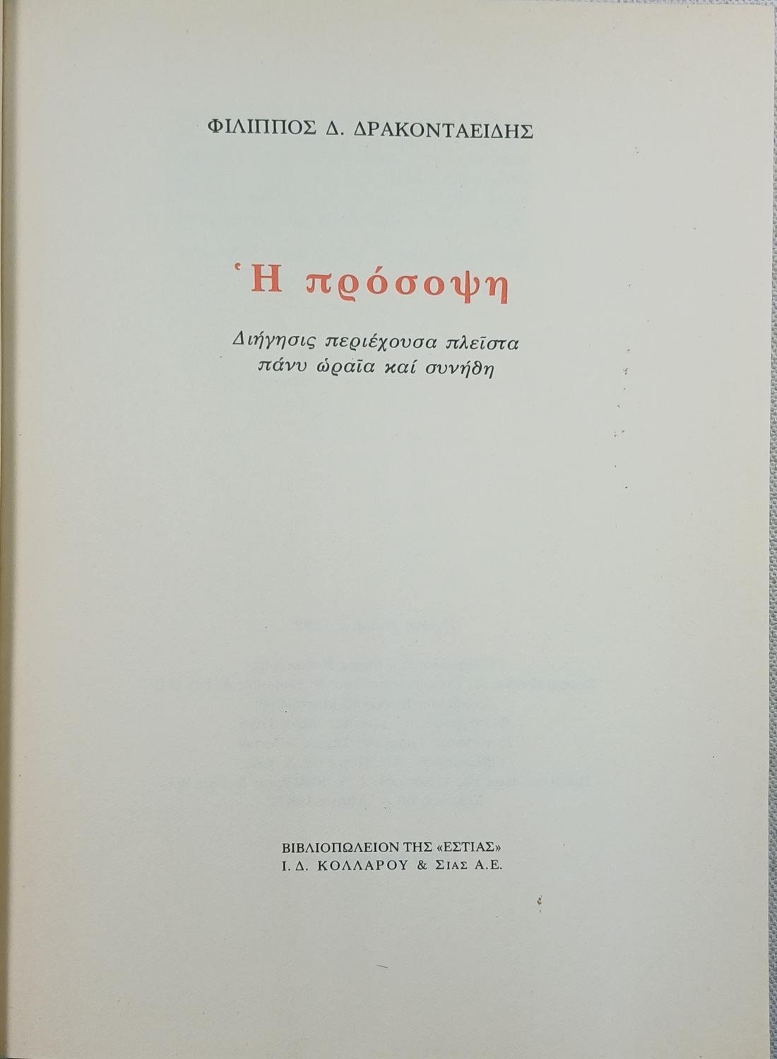 “Η Πρόσοψη” Φίλιππος Δ. Δρακονταειδής (1992)
