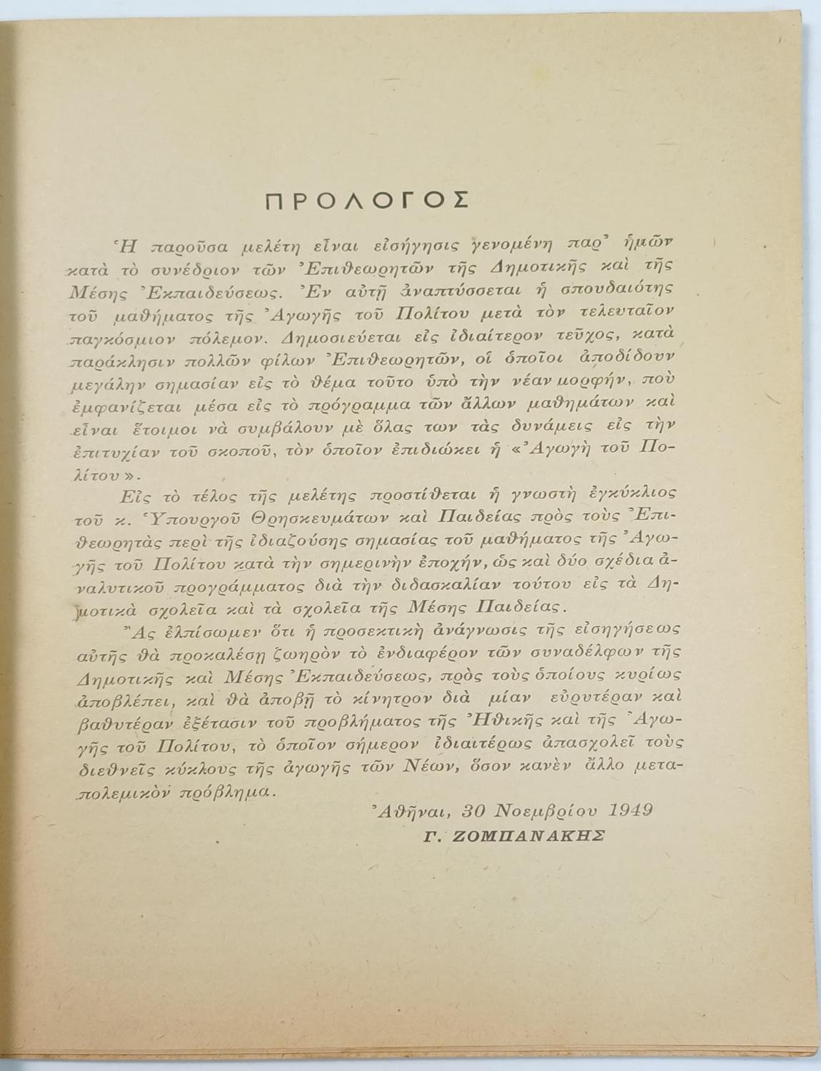 “Η Σημασία της Αγωγής του Πολίτου” Γεώργιος Ζομπανάκης (1949)
