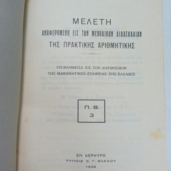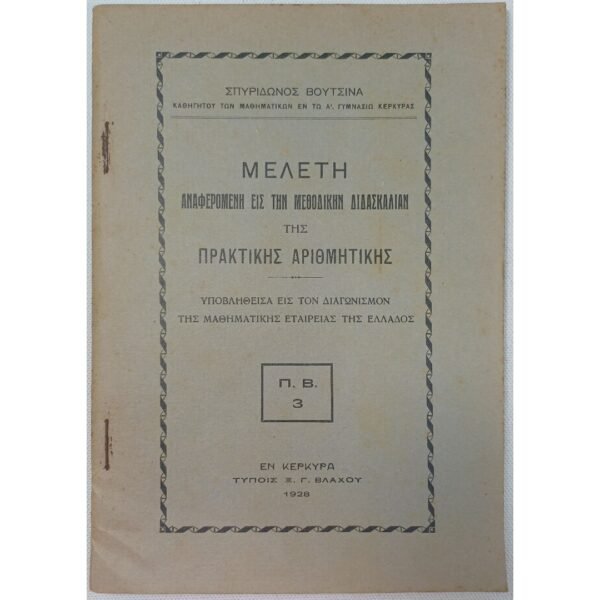 “Μελέτη αναφερομένη εις την μεθοδικήν διδασκαλίαν της Πρακτικής Αριθμητικής” Α΄ γυμνασίου (1928)