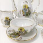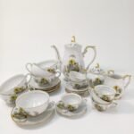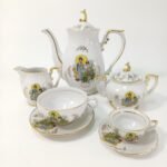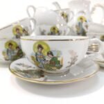 Ιαπωνικό σερβίτσιο τσαγιού 27 τεμαχίων από πορσελάνη. Είναι σε πολύ καλή κατάσταση. Υπάρχει μικρή φθορά στα χρώματα λόγω χρήσης και παλαιότητας. Αποτελείται από: 6 μεγάλα φλιτζάνια με τα 6 πιατάκια τους, 6 μικρά φλιτζάνια με τα 6 πιατάκια τους, 1 κανάτα τσαγιού ύψους 22 cm, 1 δοχείο ζάχαρης με καπάκι και 1 γαλατιέρα. Υπάρχουν οι σφραγίδες Empire και το Made in Zapan στη βάση τους.