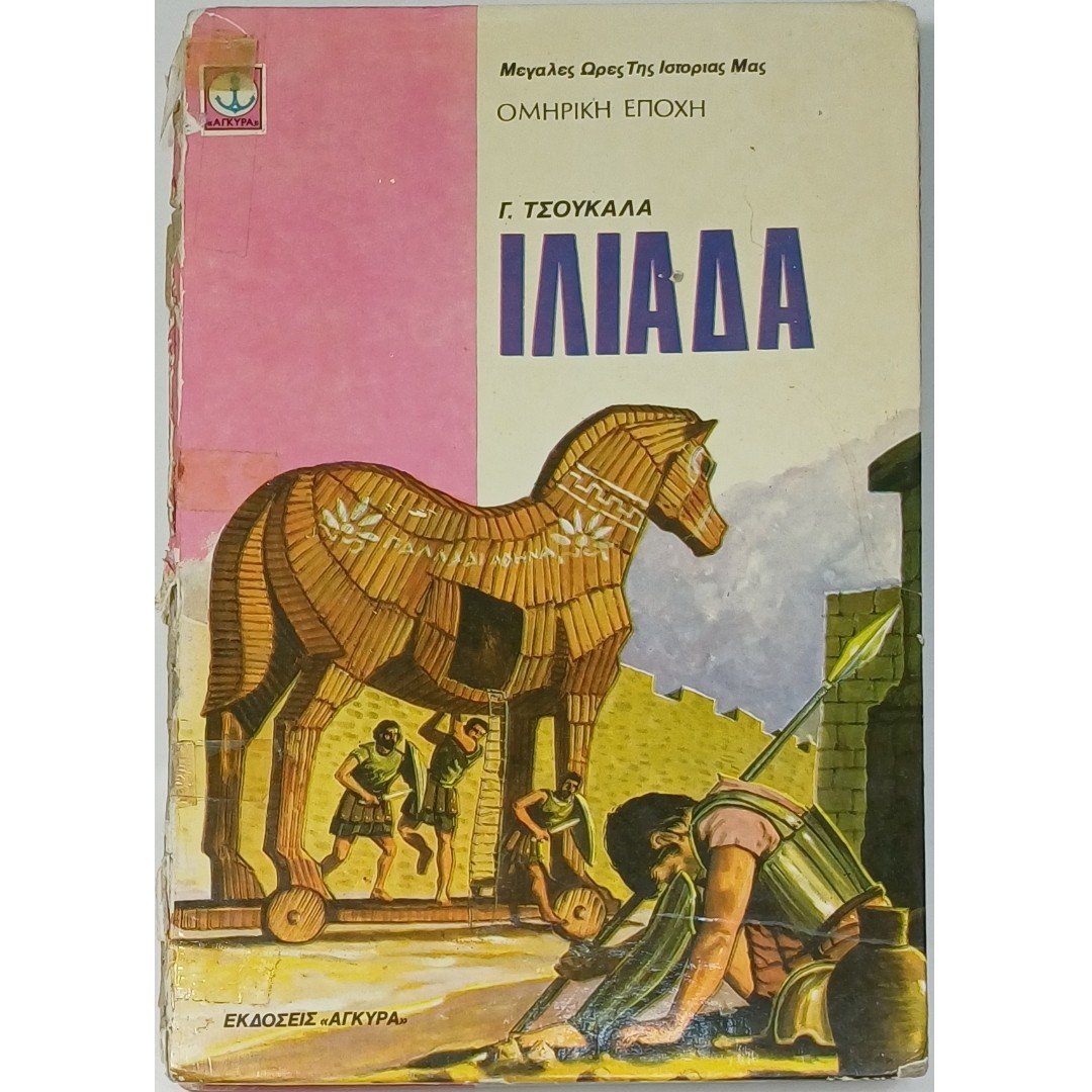 Το σπάνιο βιβλίο είναι η διασκευή της κλασικής Ιλιάδας του Ομήρου από τον Γ. Τσουκαλά, το οποίο εκδόθηκε από τις εκδόσεις Άγκυρα ως μέρος της σειράς “Μεγάλες Ώρες Της Ιστορίας Μας”. Η έκδοση αυτή, αποτελεί μια εικονογραφημένη αφήγηση του Τρωικού Πολέμου, με έμφαση στην ιστορία των Ελλήνων και Τρώων ηρώων, όπως ο Αχιλλέας και ο Έκτορας.