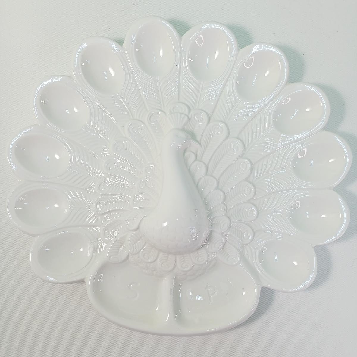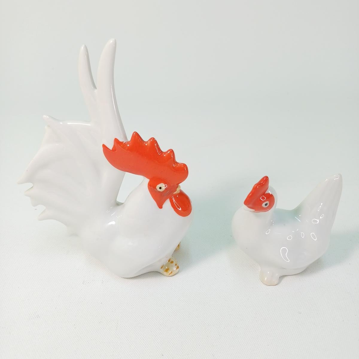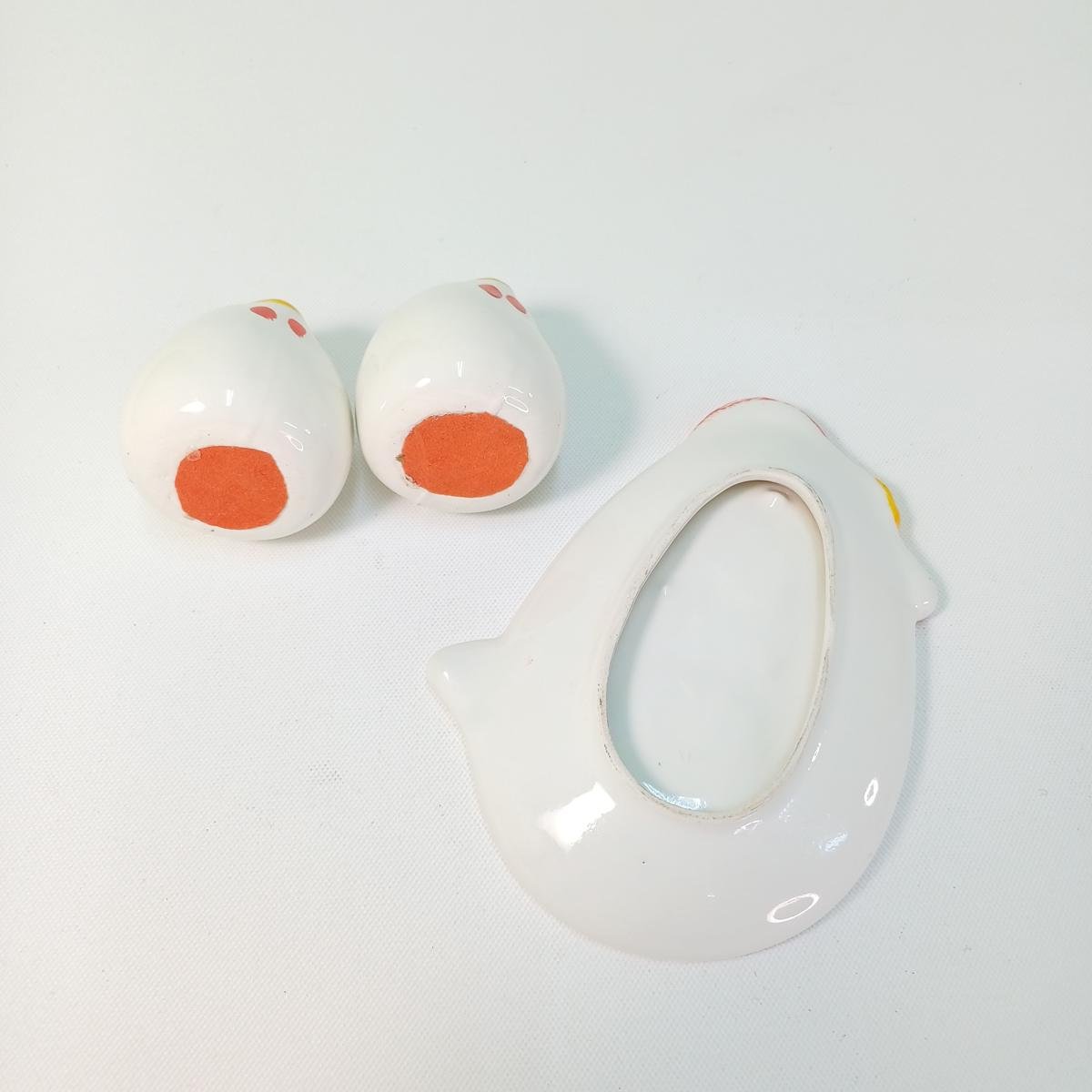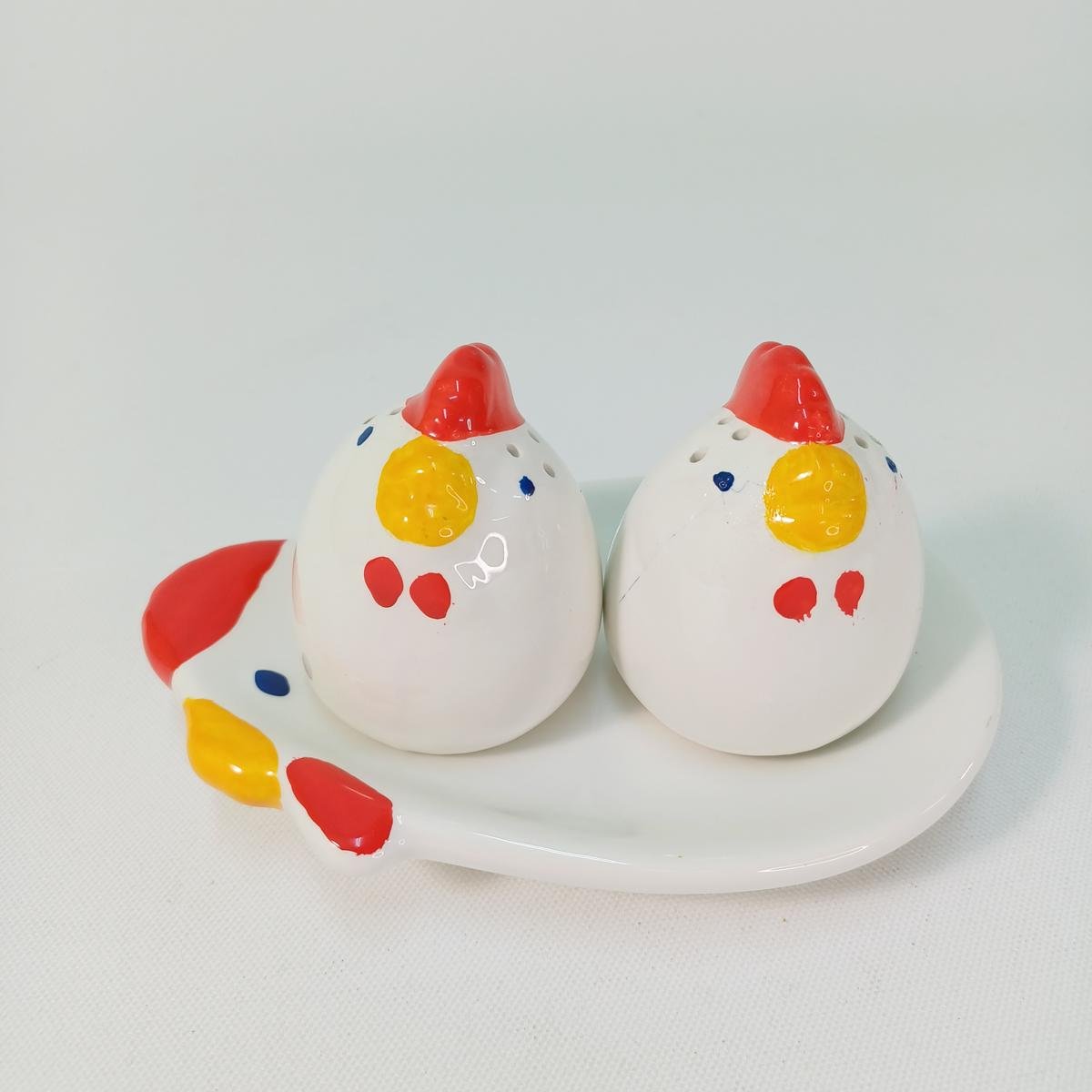 LOT 7 κεραμικών αντικειμένων για Πασχαλινή διακόσμηση τραπεζιού. Το LOT αποτελείται από: 1) ένα διακοσμητικό πουλί πάνω σε μπάλα, ύψους 14 cm και διαμέτρου 10 cm. 2) 1 πιατέλα για αυγά σε σχήμα παγωνιού και θέσεις για αλάτι και πιπέρι στο κάτω μέρος. Οι διαστάσεις της είναι 31 x 29 cm. 3) Διακοσμητικό ζευγάρι κόκορας- κότα (μέγιστου ύψους 15,5 cm). 4) Set αλατοπίπερο με πιατάκι σε σχήμα κότας. To πιατάκι έχει διαστάσεις 15 x 11 cm και το ύψος των αλατοπίπερων είναι 6,5 cm.