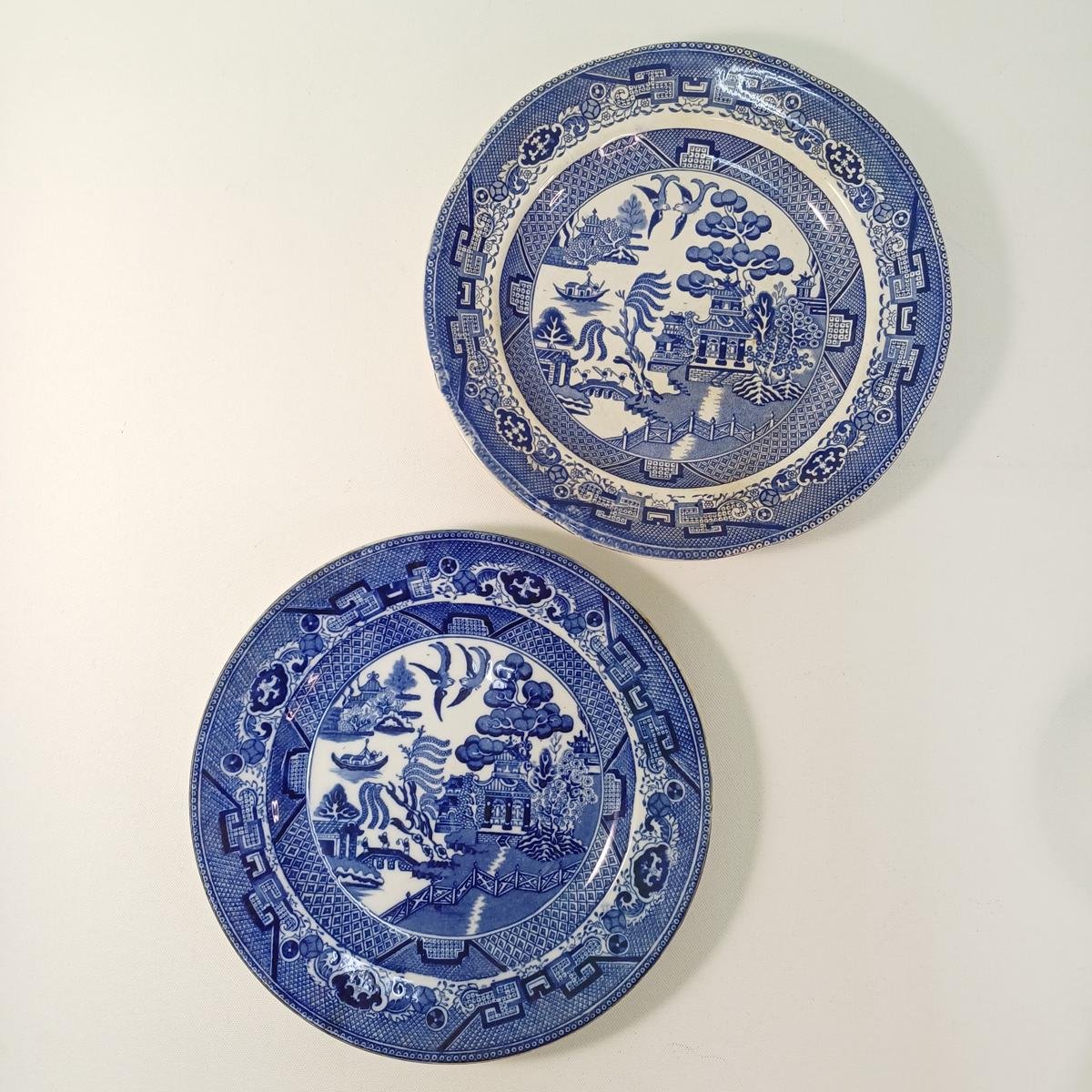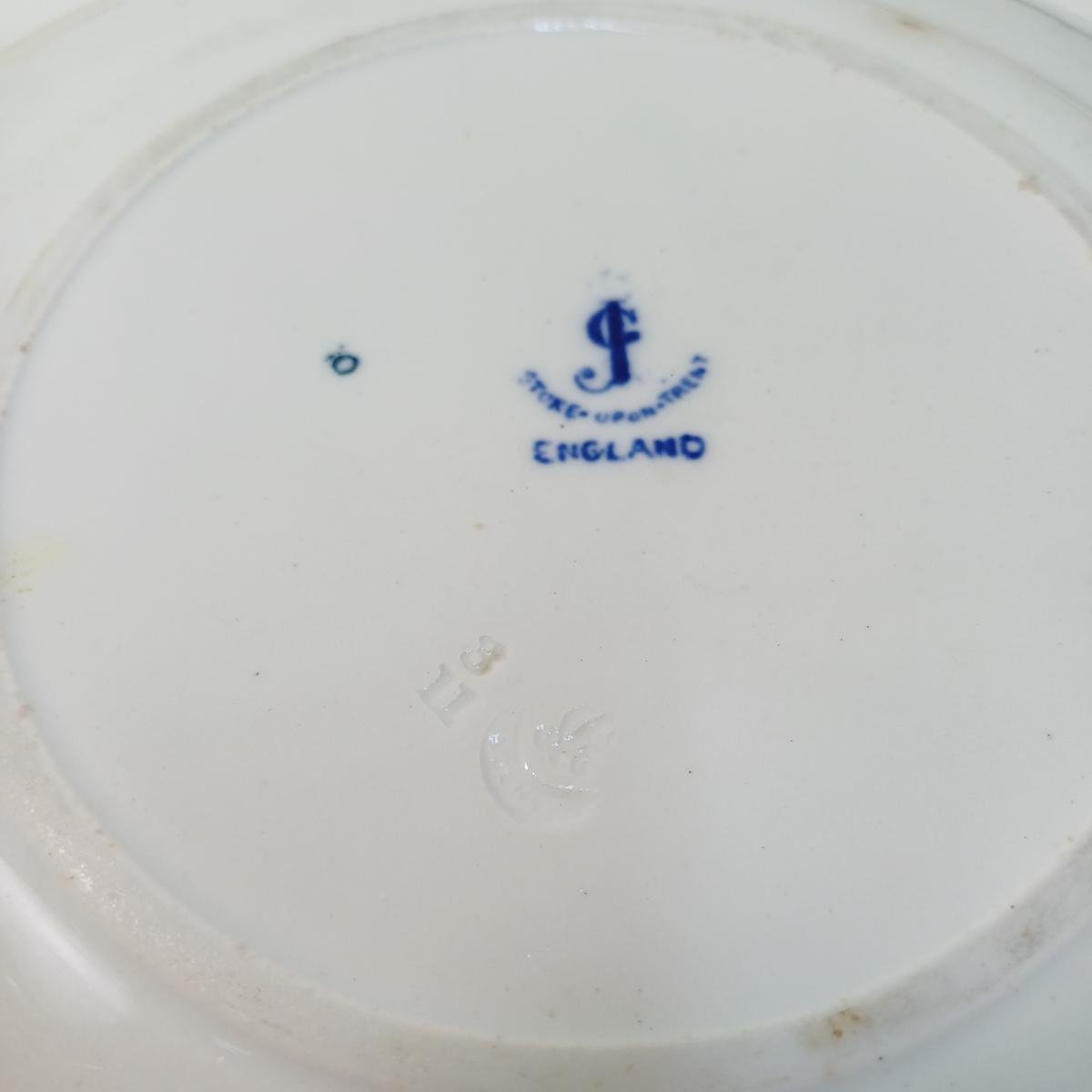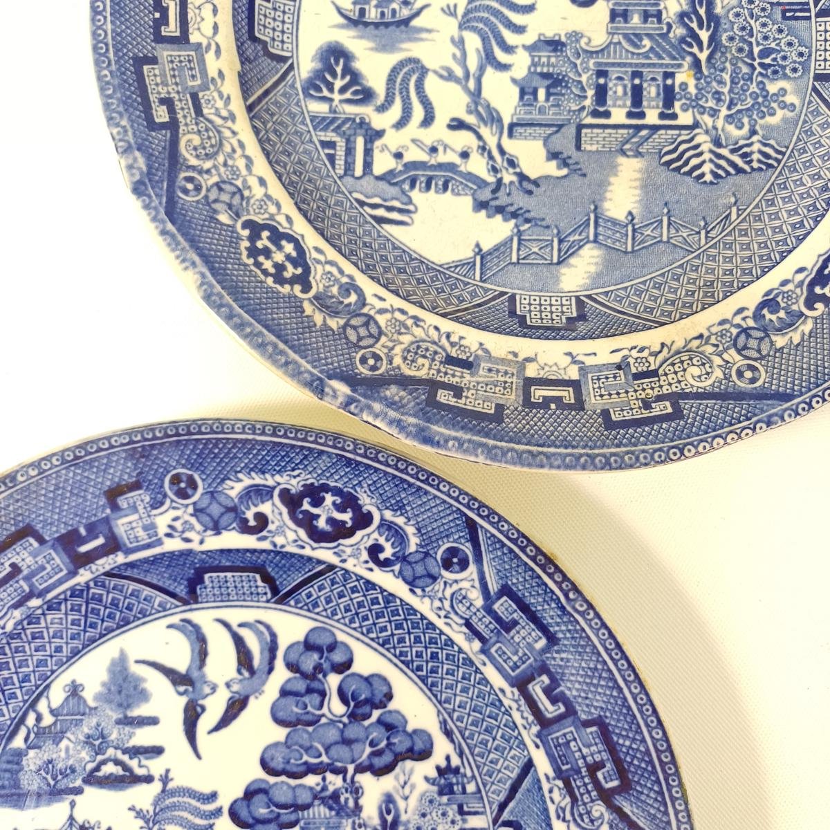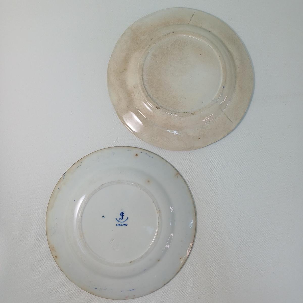 6 συλλεκτικά είδη σερβίτσιου με κινέζικο θέμα από πορσελάνη. Αποτελείται από: 1) 2 μεγάλα διακοσμητικά πιάτα αντίκες με κινεζικό θέμα. Το ένα πιάτο είναι από την εταιρεία George Jones της Αγγλίας. Πρόκειται για πορσελάνη σε μπλε και λευκό χρώμα, η ανάγλυφη σφραγίδα της οποίας υποδηλώνει την κατασκευή της τον 3ο μήνα του 1911. Τα χρώματά του έχουν κρατηθεί ζωηρά. Το δεύτερο πιάτο δεν φέρει σφραγίδες, έχει τα ίδια μοτίβα, αλλά τα χρώματα έχουν ξεθωριάσει περισσότερο και έχει ρωγμές. Η διάμετρός τους είναι 23 cm. 2) 2 πιατάκια του ίδιου κινεζικού θέματος τα οποία φέρουν μόνο σφραγίδα “High Quality”, έχοντας κρατήσει τα ζωηρά μπλε χρώματά του. Έχουν διάμετρο 11,5 cm. 3) Μικρό κινέζικο δοχείο με καπάκι “Made in China” παλαιότερων δεκαετιών. Έχει ύψος 8 cm. 4) 1 κινέζικο κουτάλι σούπας σε πράσινα- ροζ- πορτοκαλί χρώματα. Δεν φέρει σφραγίδα. Το μήκος του είναι περίπου 14 cm.