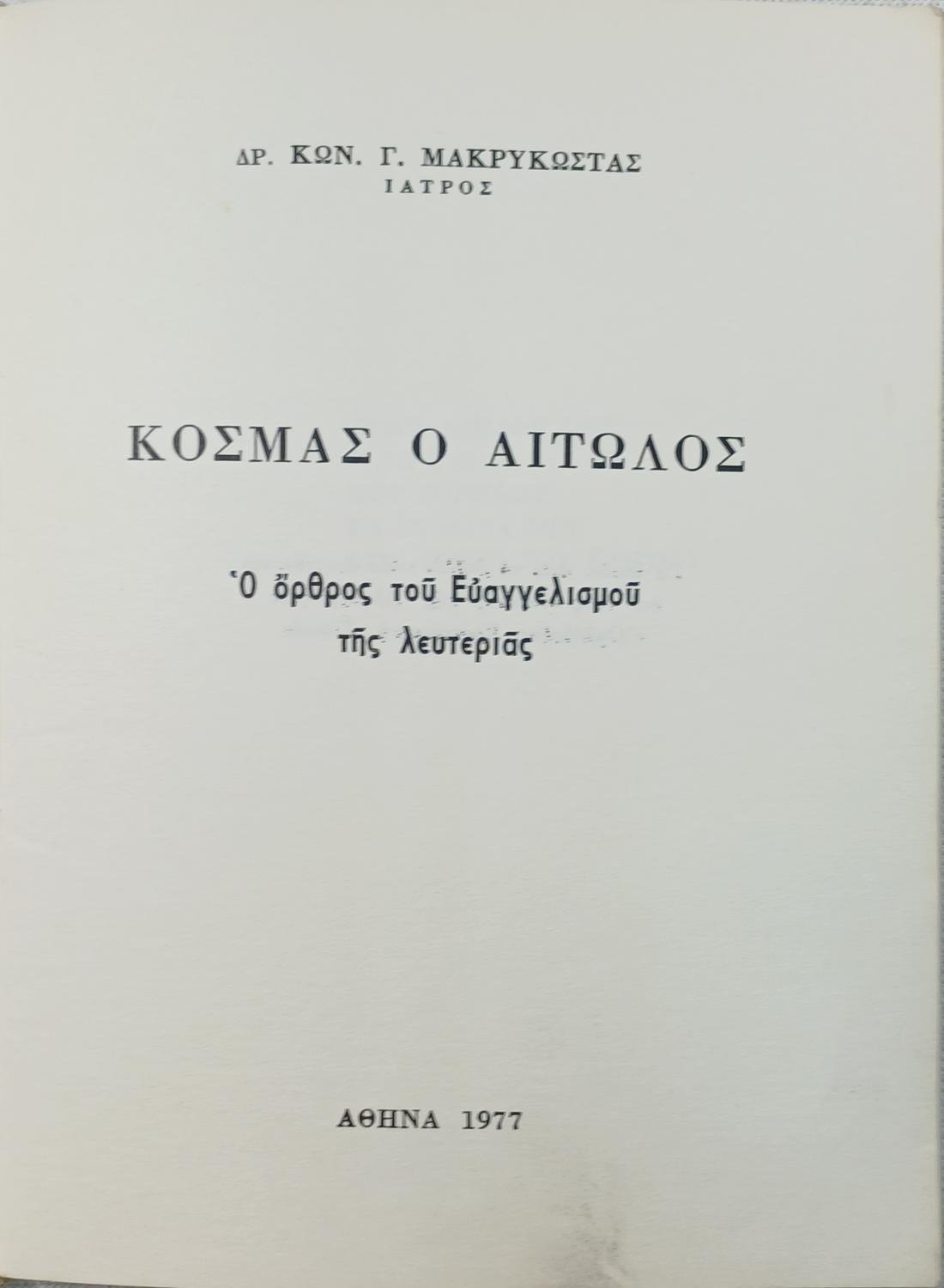 “Κοσμάς ο Αιτωλός” Δρ. Κων. Γ. Μακρυκώστας (1977)