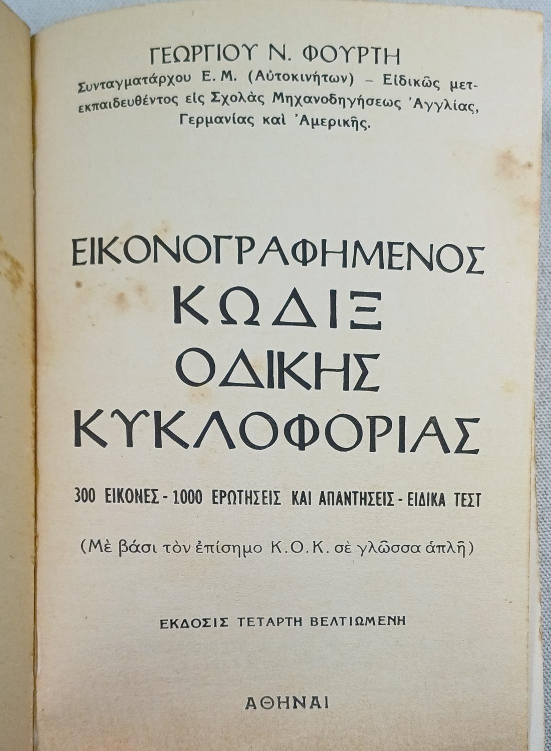 Το βιβλίο ο «Κώδιξ Οδικής Κυκλοφορίας Εικονογραφημένος», έργο του Γεωργίου Ν. Φούρτη, Συνταγματάρχη Ε.Μ. με εξειδικευμένη εκπαίδευση σε σχολές μηχανοδηγήσεως σε Αγγλία, Γερμανία και Αμερική. Πρόκειται για έναν πρακτικό και εικονογραφημένο οδηγό που παρουσιάζει τον επίσημο Κώδικα Οδικής Κυκλοφορίας (Κ.Ο.Κ.) σε απλή γλώσσα, λειτουργώντας ως εκπαιδευτικό βοήθημα. Η συγκεκριμένη έκδοση περιέχει αναλυτικά 300 εικόνες, 1000 ερωτήσεις και απαντήσεις, καθώς και ειδικά τεστ για την κατανόηση των κανόνων.