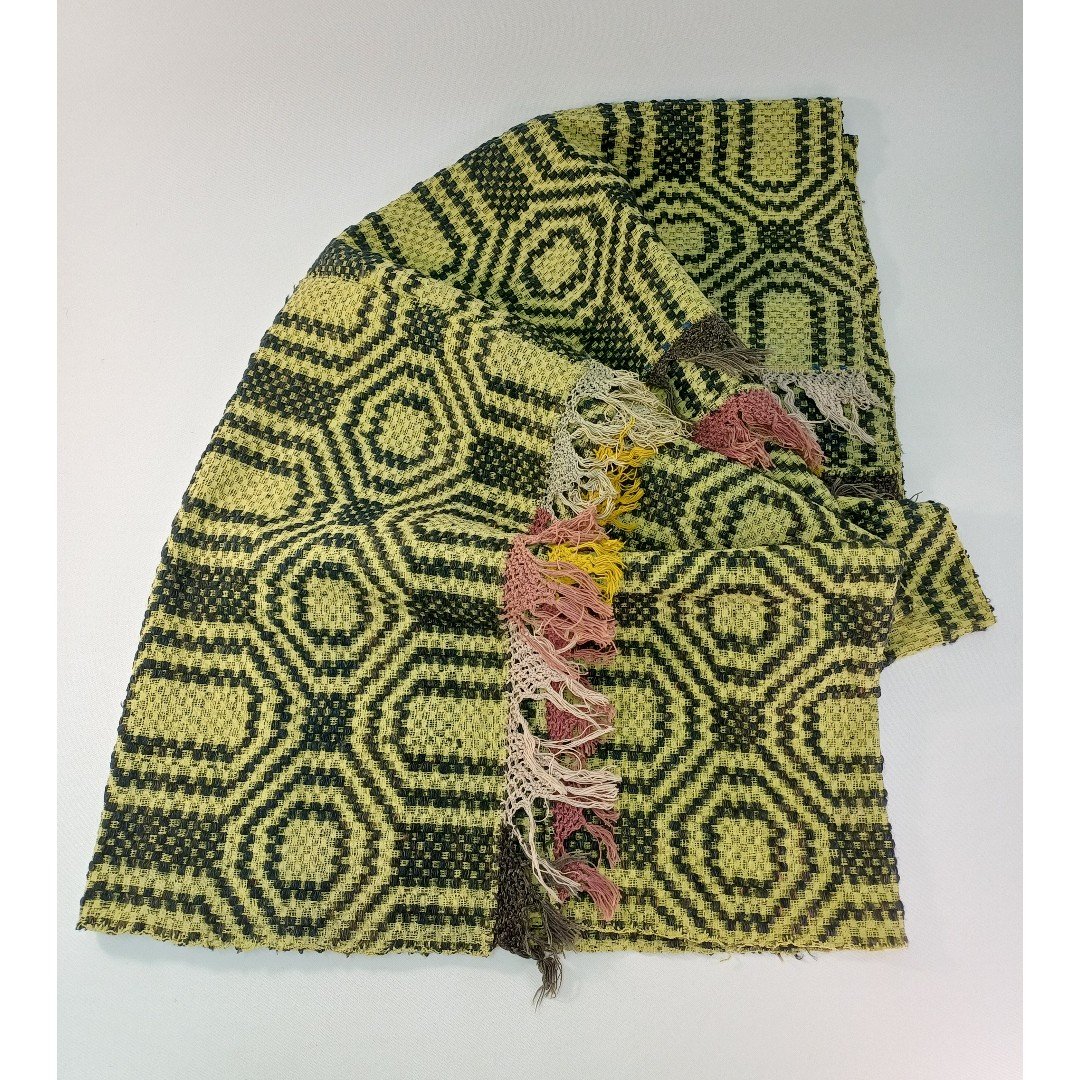 Παραδοσιακό ριχτάρι με πικέ ύφανση, γεωμετρικά μοτίβα και χρωματιστά κρόσσια στις μικρές διαστάσεις