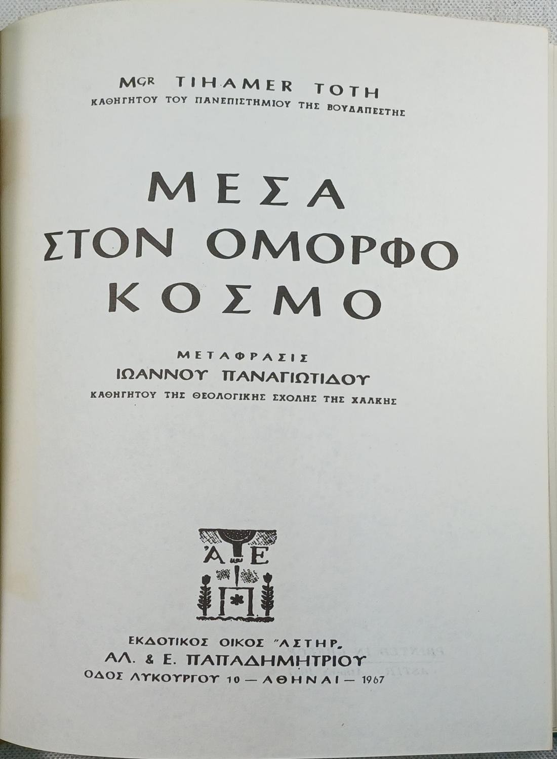 “Μέσα στον όμορφο κόσμο” Mgr Tihamer Toth (1967)