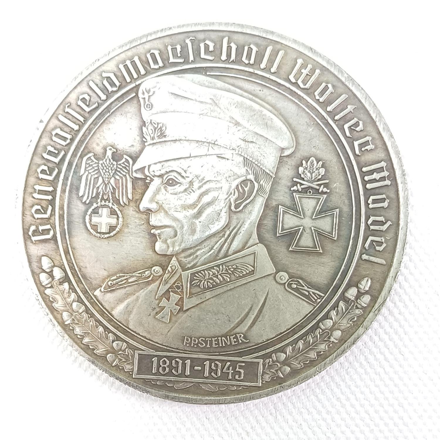Αντίγραφο μεταλλίου το οποίο στην μια όψη απεικονίζει τον Walter Model, στρατάρχη (Generalfeldmarschall) του γερμανικού στρατού κατά τη διάρκεια του Β’ Παγκοσμίου Πολέμου. Ο Walter Model θεωρείται από τους καλύτερους αμυντικούς διοικητές της Ναζιστικής Γερμανίας και διακρίθηκε για την πεισματική του στάση στις μάχες. Η σχέση του με τον Χίτλερ διαταράχθηκε μετά την ήττα στη Μάχη των Αρδεννών στα τέλη 1944- αρχές 1945. Στο μετάλλιο αναγράφονται, επίσης, οι χρονολογίες 1891-1945 που αντιστοιχούν στη ζωή του.