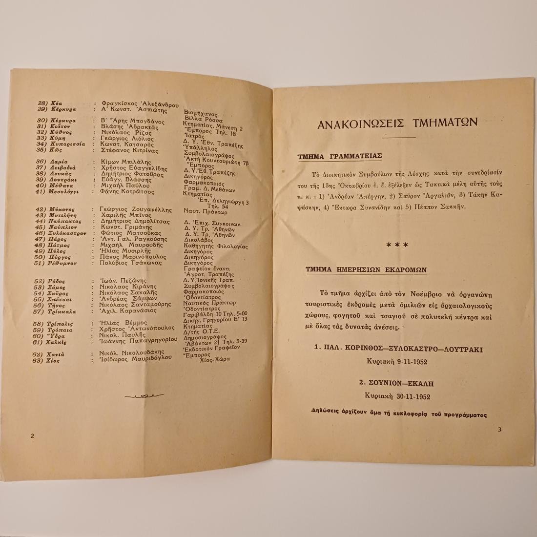 Μηνιαίο περιοδικό της Ελληνικής Περιηγητικής Λέσχης με ημερομηνία έκδοσης τον Νοέμβριο του 1952