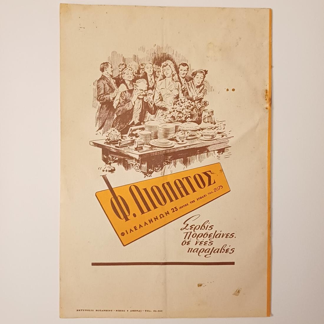 Μηνιαίο περιοδικό της Ελληνικής Περιηγητικής Λέσχης με ημερομηνία έκδοσης τον Νοέμβριο του 1952. Η Λέσχη ιδρύθηκε αρχικά το 1921 ως «Οδοιπορικός Σύνδεσμος» και υπήρξε ο πρώτος οργανωμένος φορέας για τον τουρισμό στην Ελλάδα, με στόχο την ανάδειξη της φύσης, της ιστορίας και του λαϊκού πολιτισμού μέσω εκδρομών και περιηγήσεων. Το συγκεκριμένο έντυπο της δεκαετίας του ’50 διακρίνεται για την ιδιαίτερη αισθητική και τη γραφιστική του επιμέλεια, με το εξώφυλλο να κοσμείται από το έμβλημα της Λέσχης (ένας φτερωτός τροχός με μαίανδρο) και παραδοσιακά ελληνικά μοτίβα, όπως ανεμόμυλους, αρχαία αγγεία και αγροτικές σκηνές.