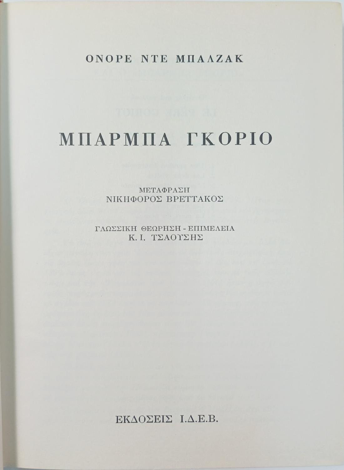 “Μπάρμπα Γκοριό” Ονορέ ντε Μπαλζάκ (1978)