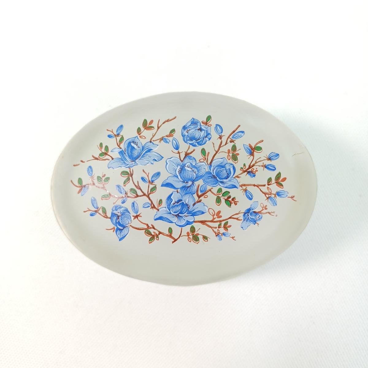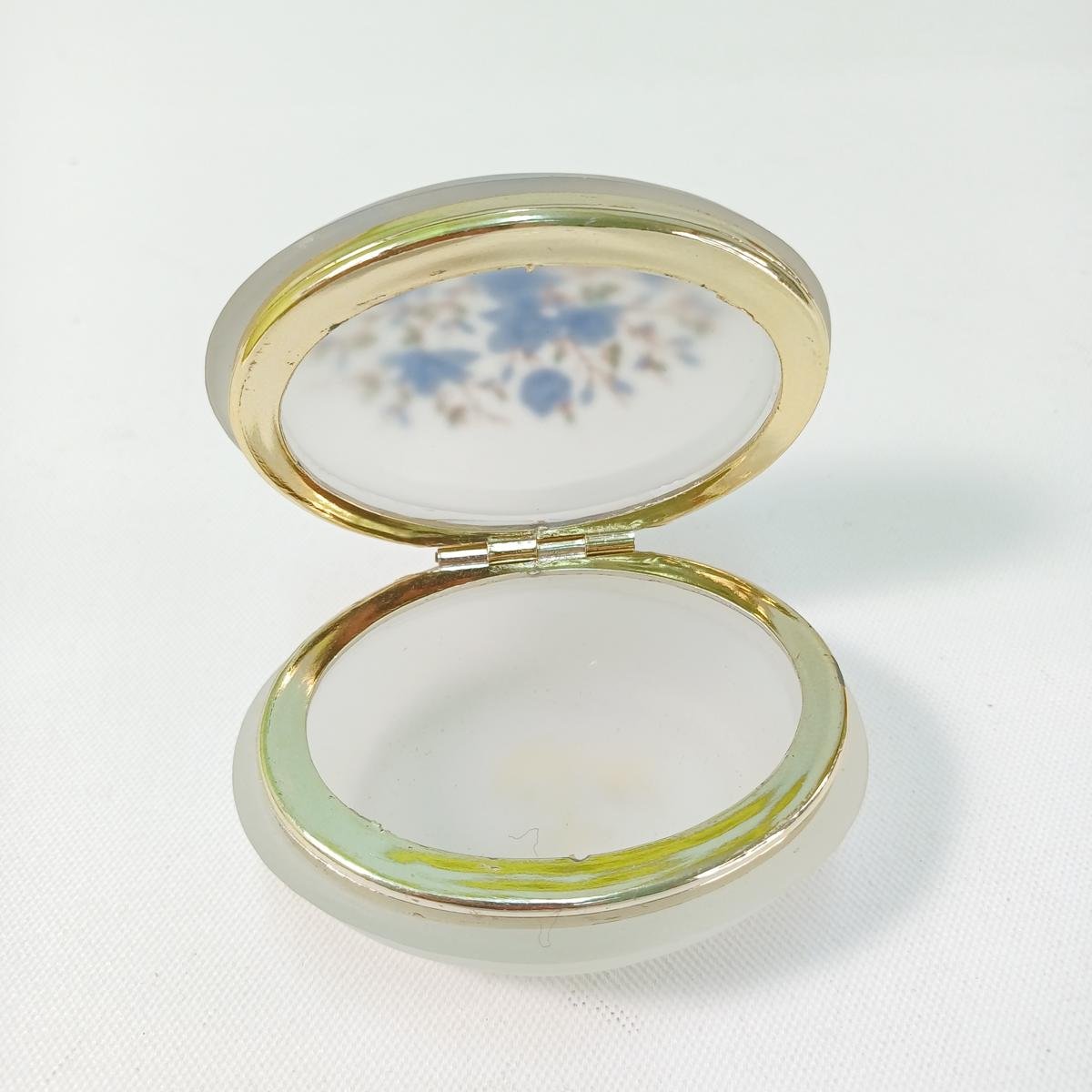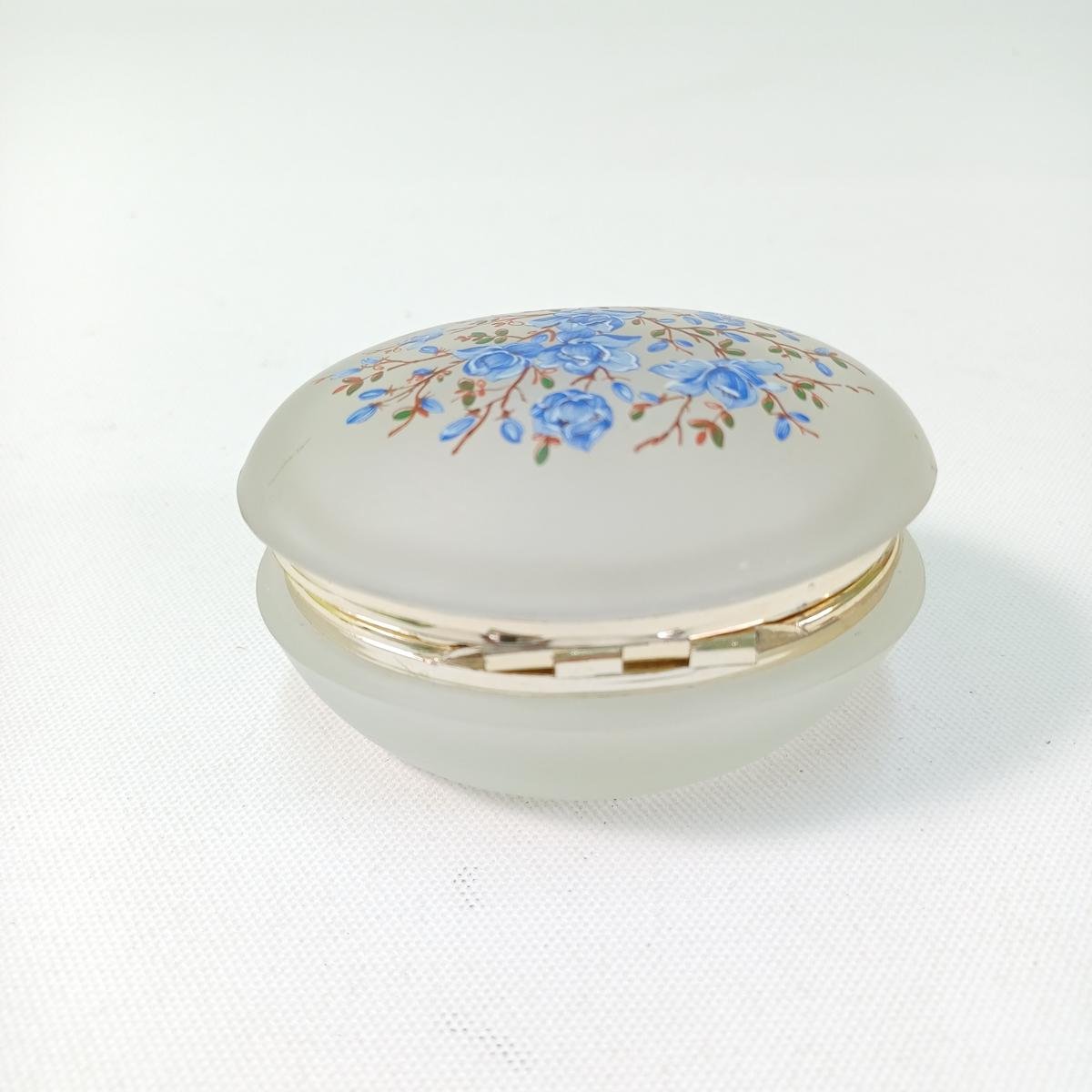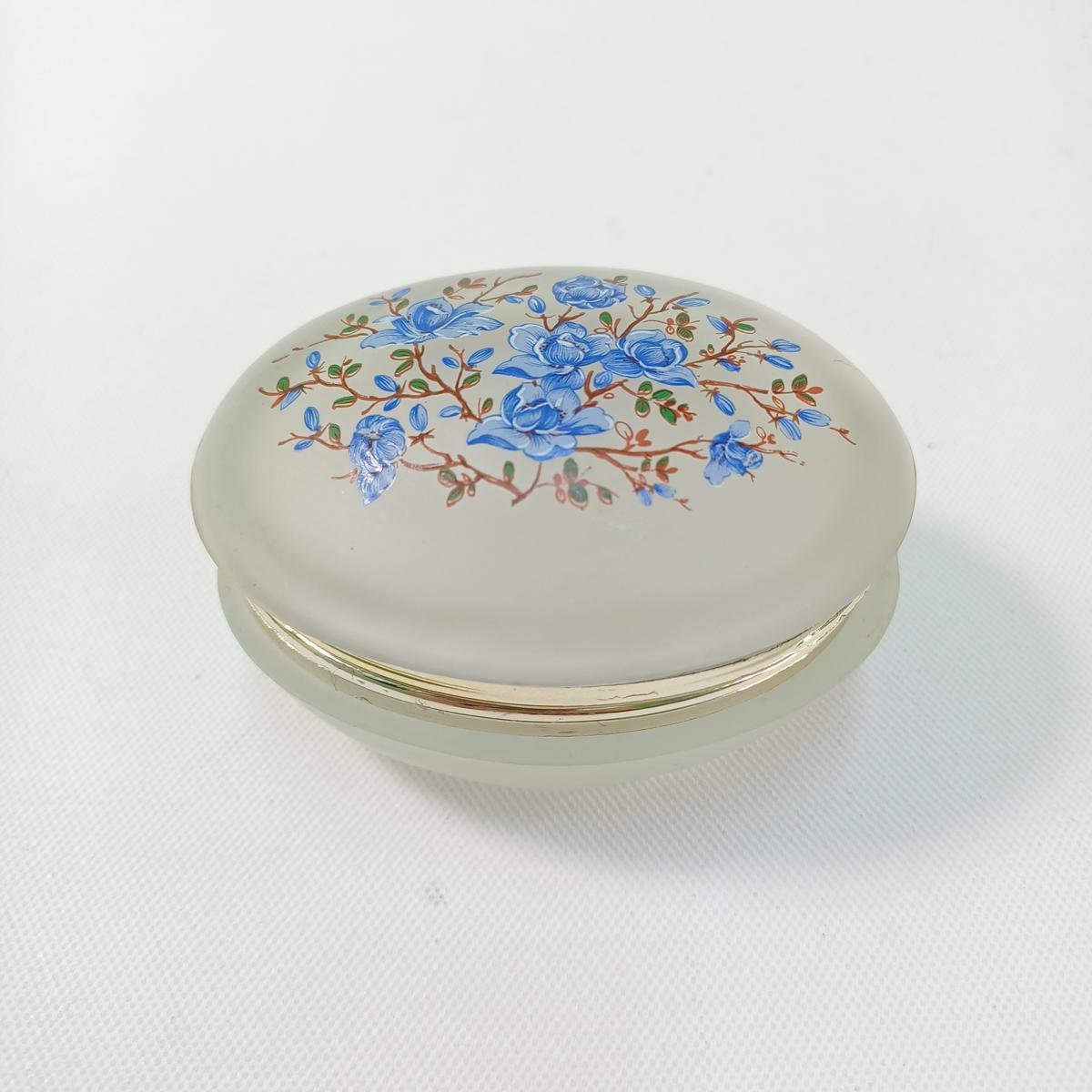 Μπιζουτιέρα vintage γυάλινη (στο χρώμα του πάγου) με διακόσμηση μπλε λουλουδιών