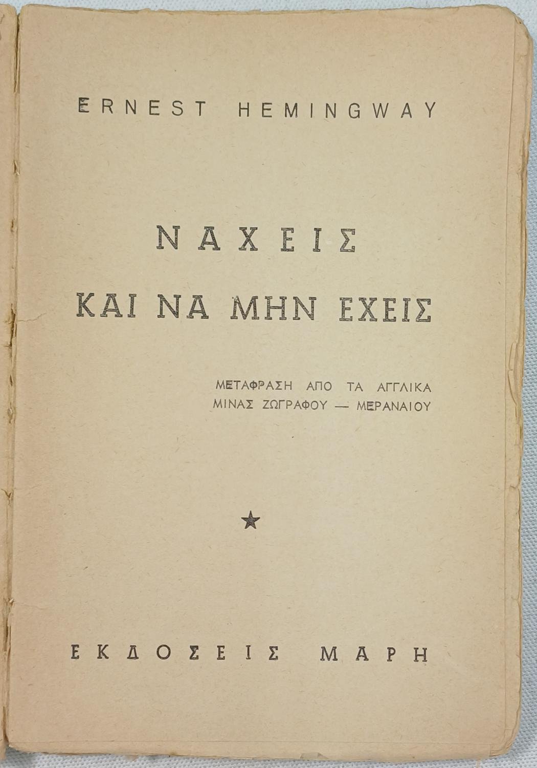 “Να χεις και να μην έχεις” Έρνεστ Χέμινγουεϊ (1950)
