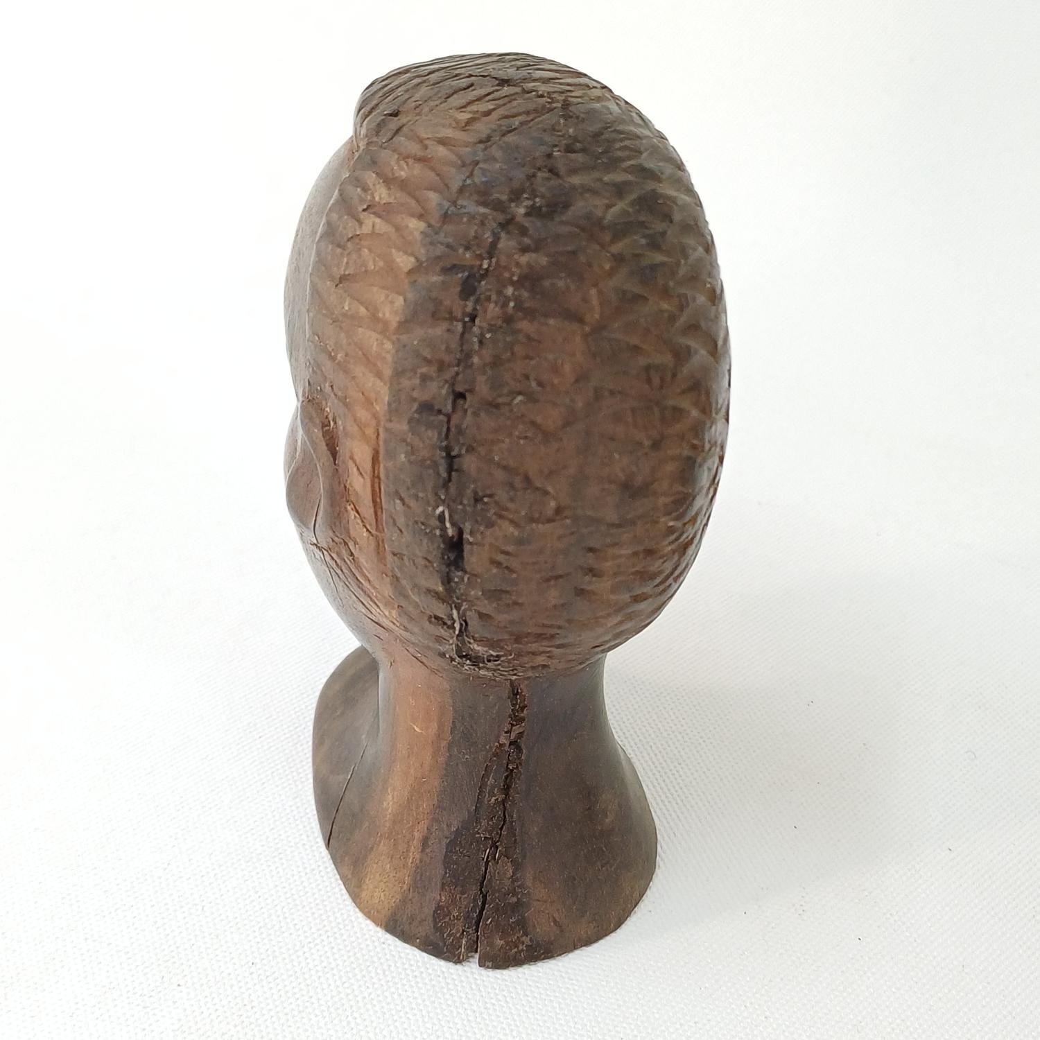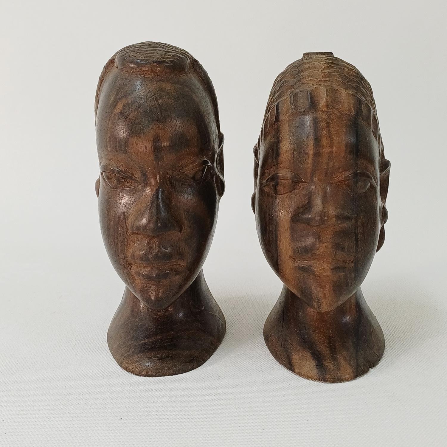2 ξύλινα γλυπτά (προτομές) παραδοσιακής αφρικανικής τέχνης, ανδρική και γυναικεία φιγούρα.